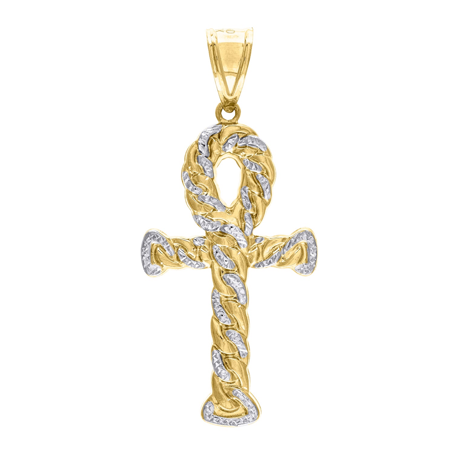 10kt Gold Two-tone Diamond-cut Mens Ankh Cross Ht:63.3mm x W:27mm Religious Charm Pendant