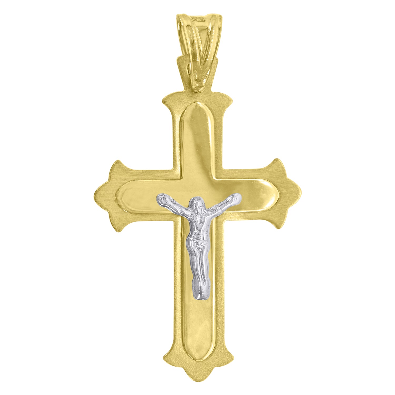 10kt Gold Two-tone Mens Cross Crucifix Ht:41.1mm x W:22.2mm Religious Charm Pendant