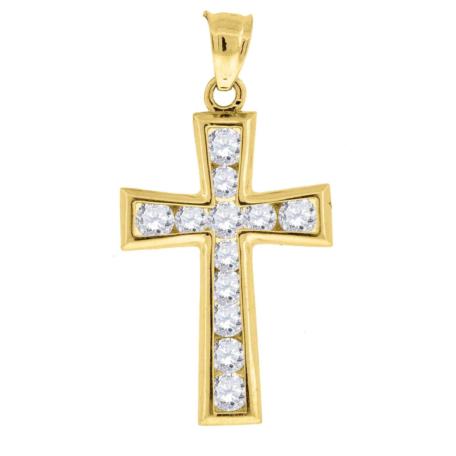 10kt Yellow Gold Womens Mens Round Cubic Zirconia Cubic-zirconia Cross Religious Charm Pendant