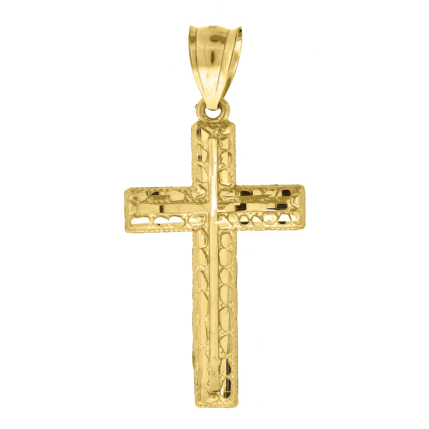10kt Yellow Gold Diamond-cut Mens Cross Ht:38mm x W:18.6mm Religious Charm Pendant