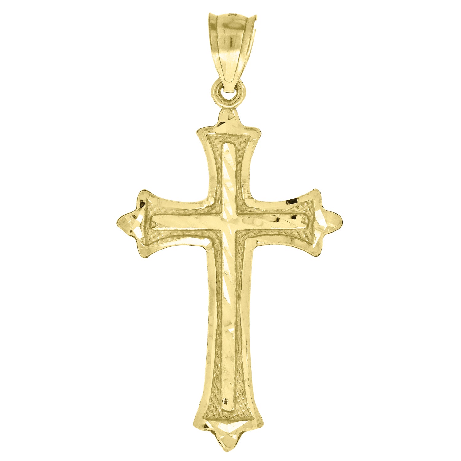 10kt Yellow Gold Diamond-cut Mens Cross Ht:46mm x W:24.2mm Religious Charm Pendant