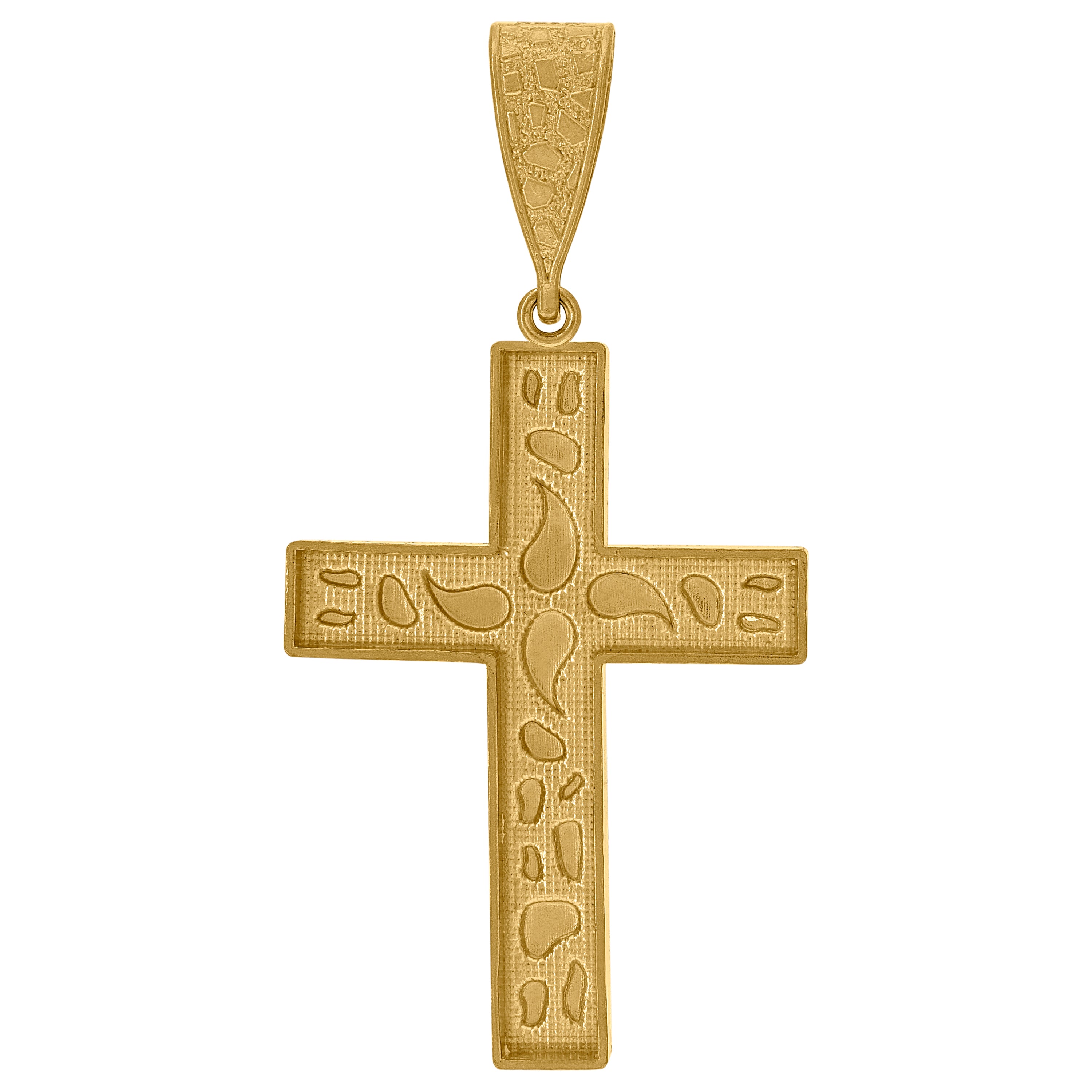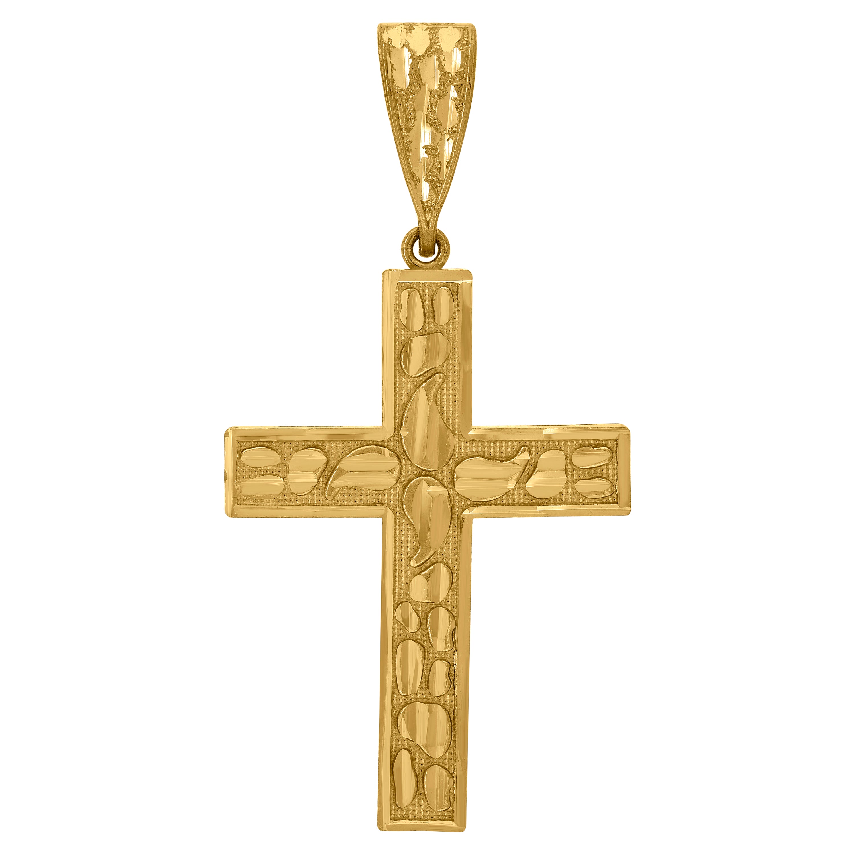 10kt Yellow Gold Diamond-cut Nugget Mens Cross Ht:53mm x W:27.4mm Religious Charm Pendant