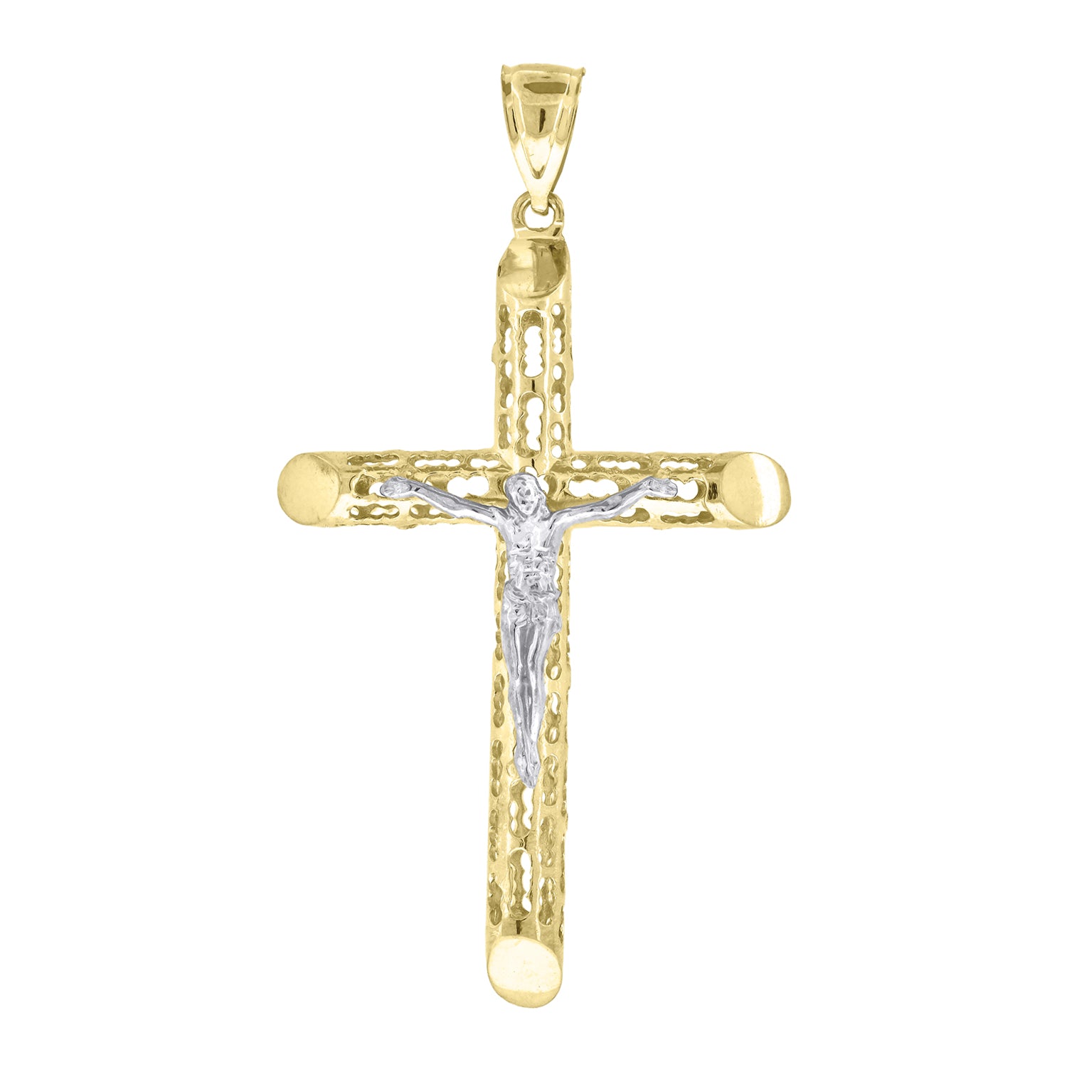 10kt Gold Two-tone Diamond-cut Mens Cross Crucifix Ht:72mm x W:39.3mm Religious Charm Pendant