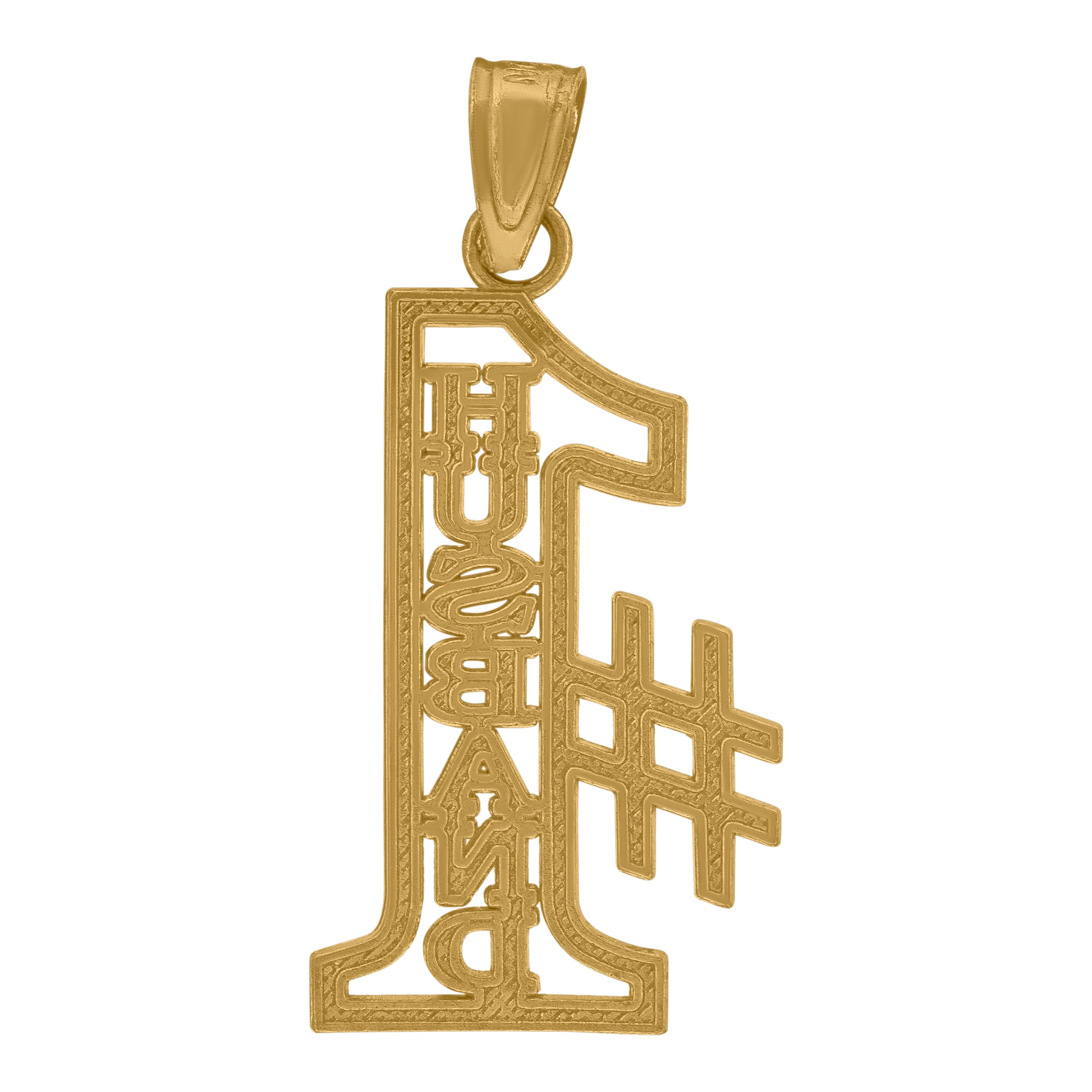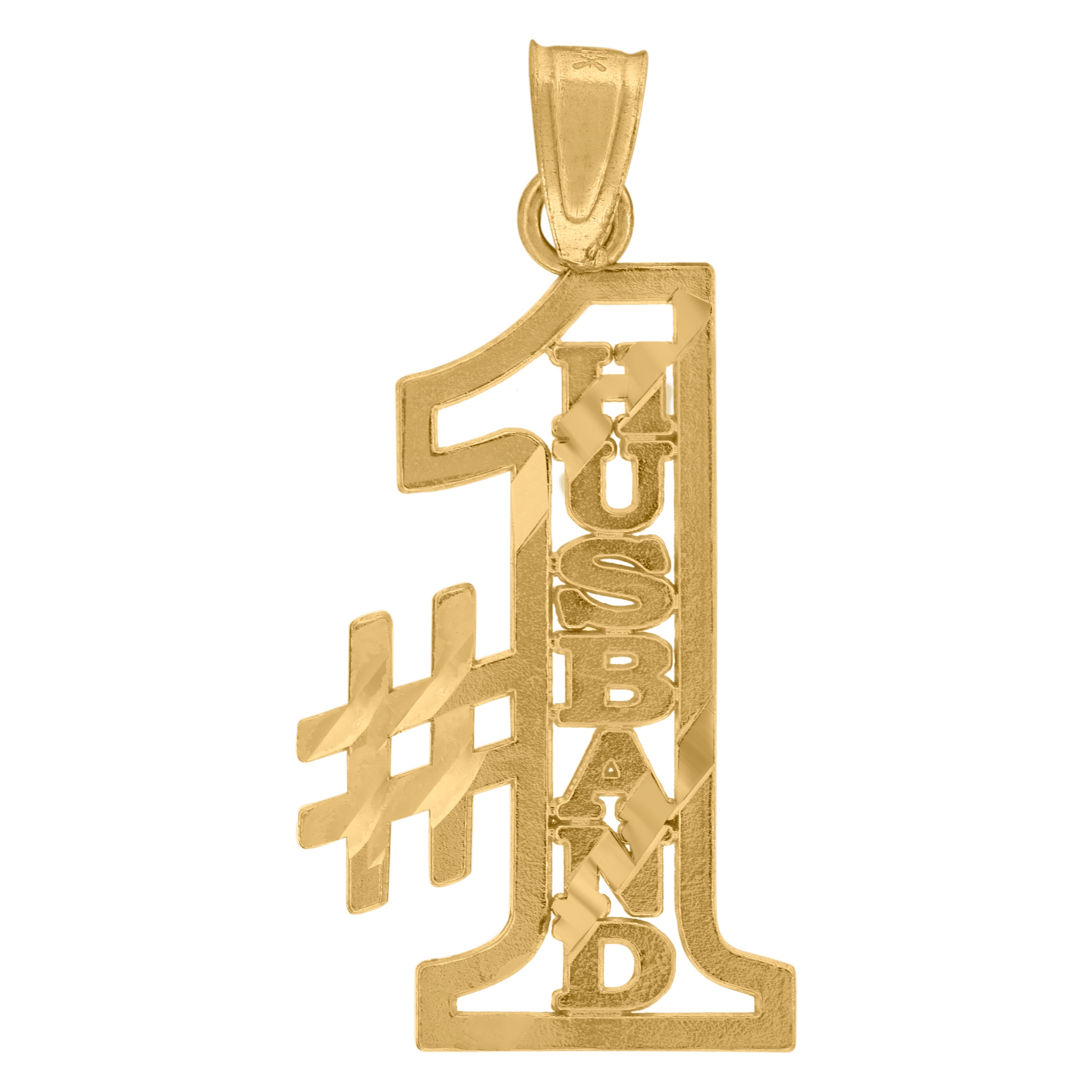 10kt Yellow Gold Diamond-cut Mens No.1 Husband Ht:26.5mm x W:12.5mm Letters & Words Charm Pendant