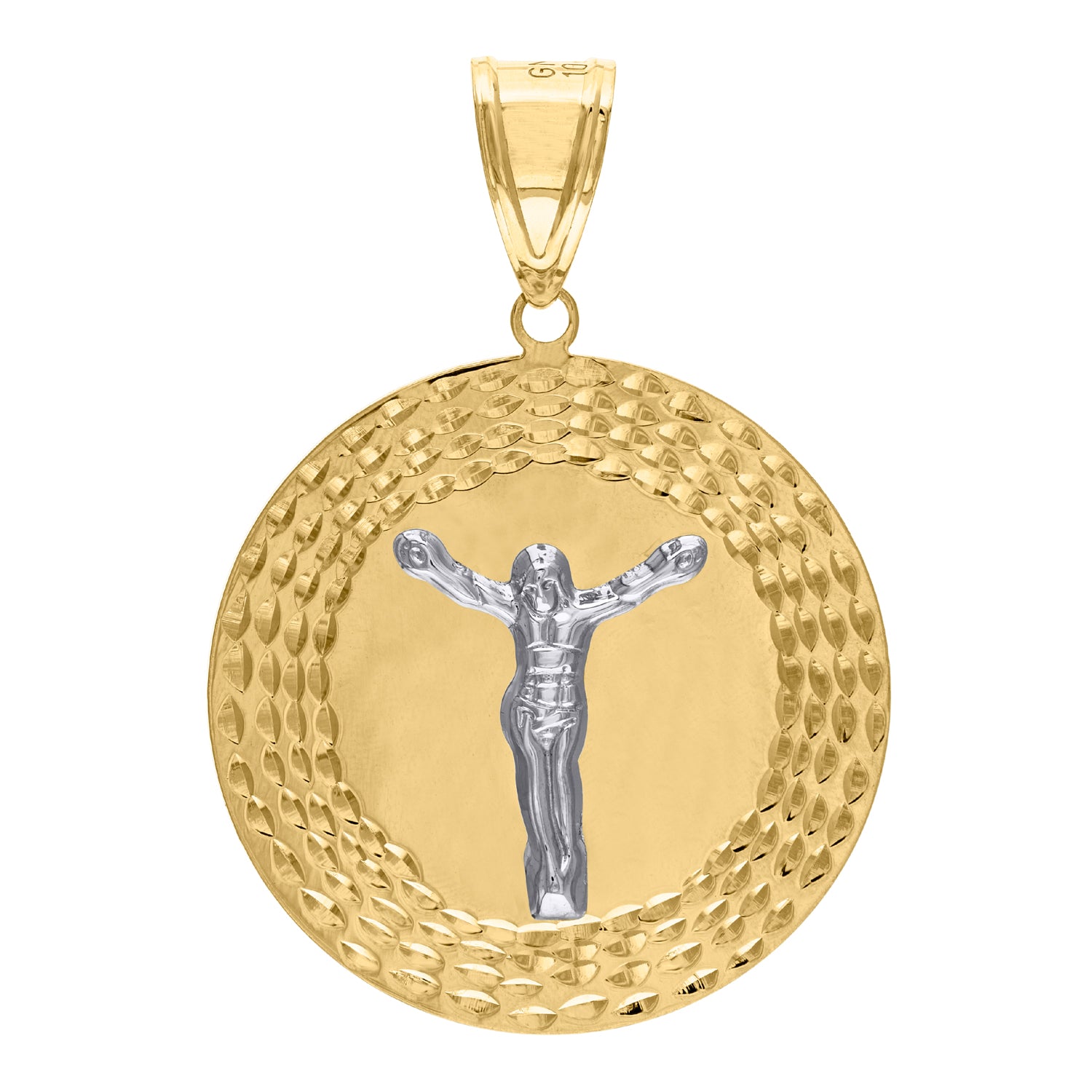 10kt Gold Two-tone Diamond-cut Mens Jesus Ht:52.3mm x W:36.6mm Religious Charm Pendant