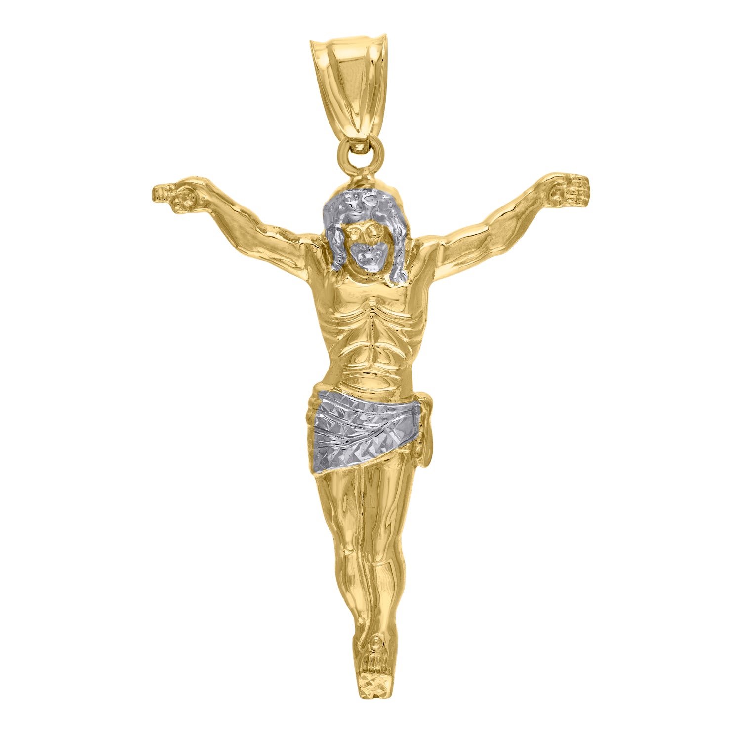 10kt Gold Two-tone Mens Jesus Crucifix Ht:51.7mm x W:33.8mm Religious Charm Pendant
