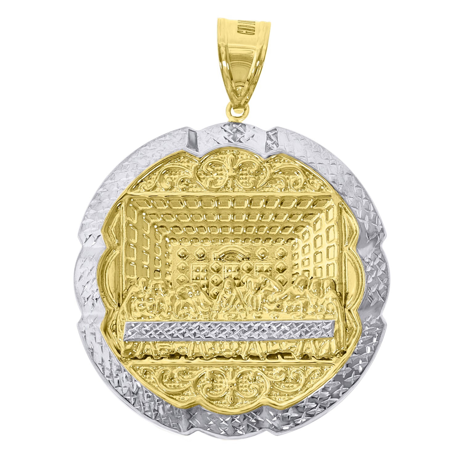 10kt Gold Two-tone Diamond-cut Mens Last Supper Ht:61.5mm x W:45.8mm Religious Charm Pendant