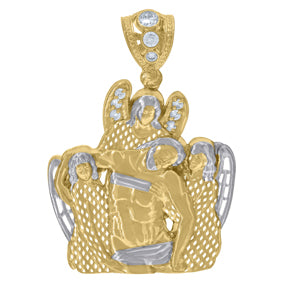 10kt Two-Tone Gold Mens Cubic-Zirconia Religious Jesus Charm Pendant