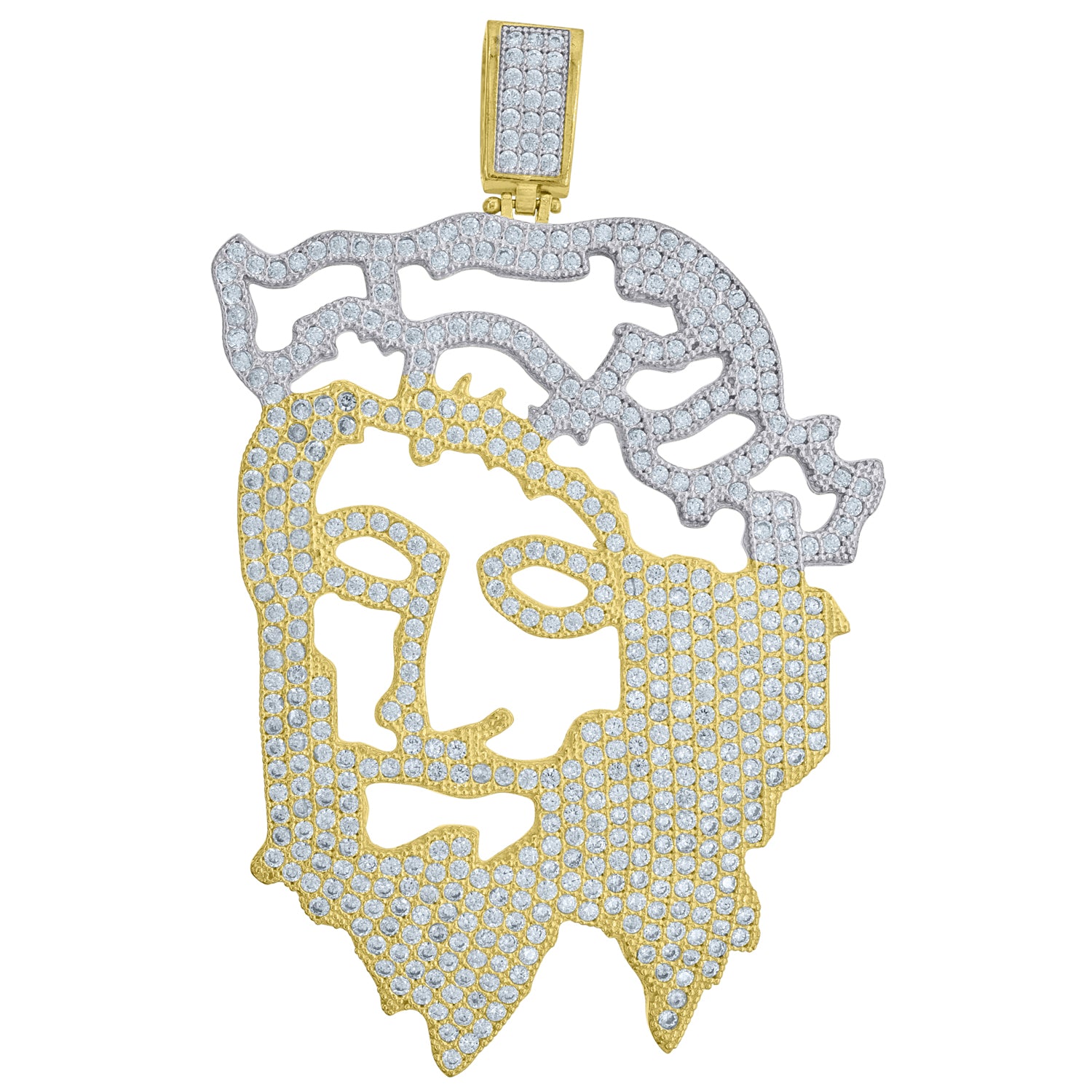 10kt Two-Tone Gold Mens Cubic-Zirconia Religious Jesus Charm Pendant