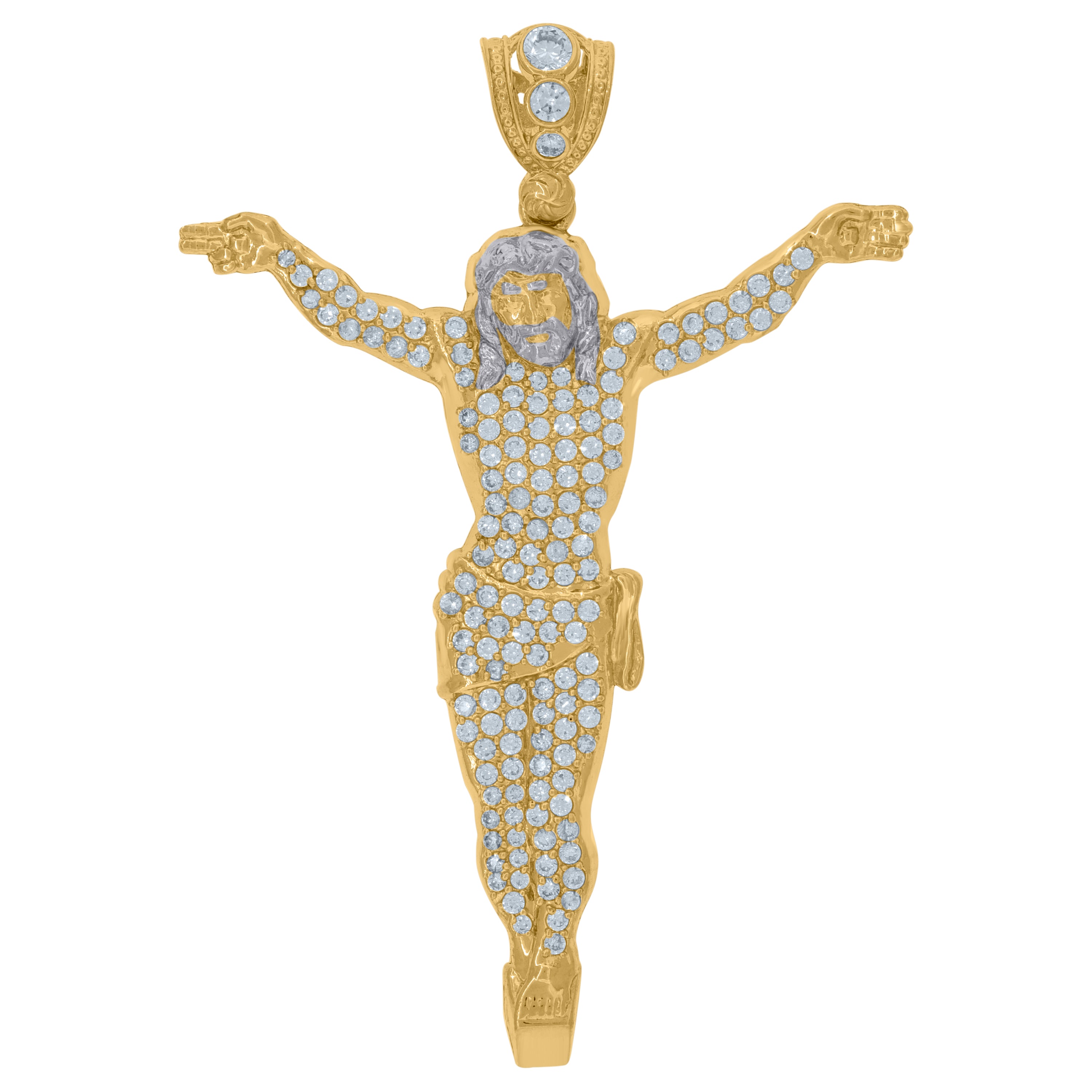 10KT Two-Tone Gold Mens Cubic Zirconia Crucifix Religious Charm Pendant