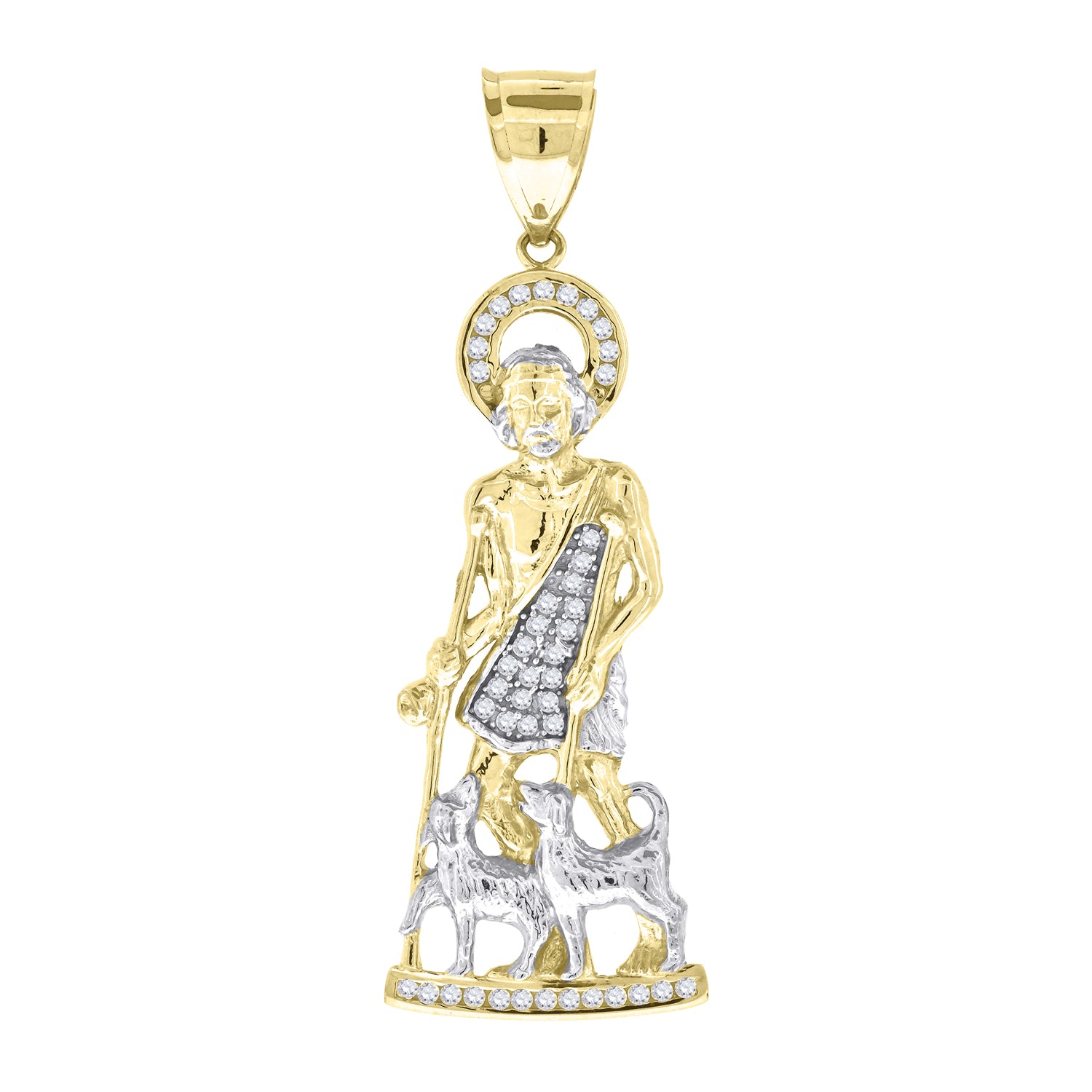 10kt Gold Two-tone Cubic-zirconia Mens Saint Lazarus Ht:67.8mm x W:23.2mm Religious Charm Pendant