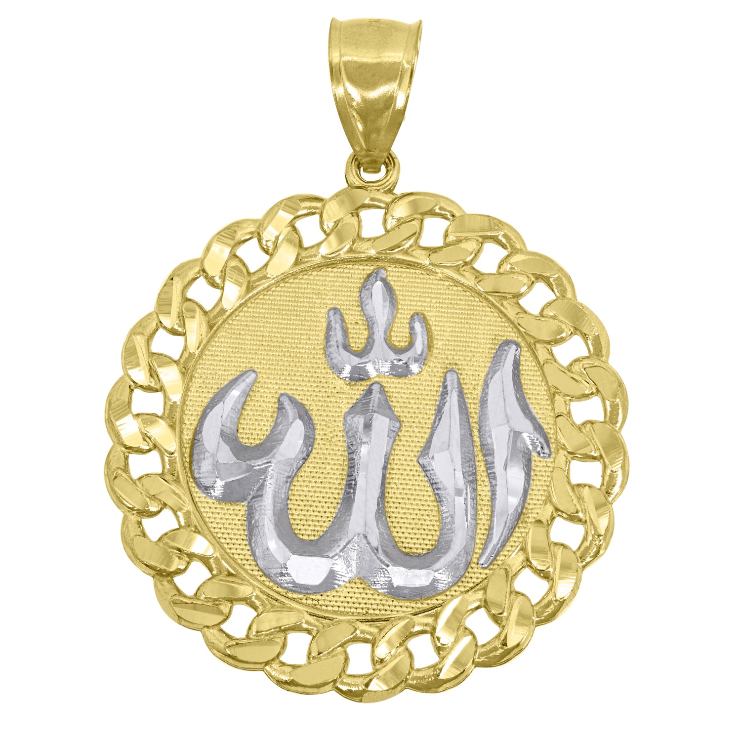 10kt Gold Two-tone Textured Mens Allah Ht:44.8mm x W:33.5mm Religious Charm Pendant