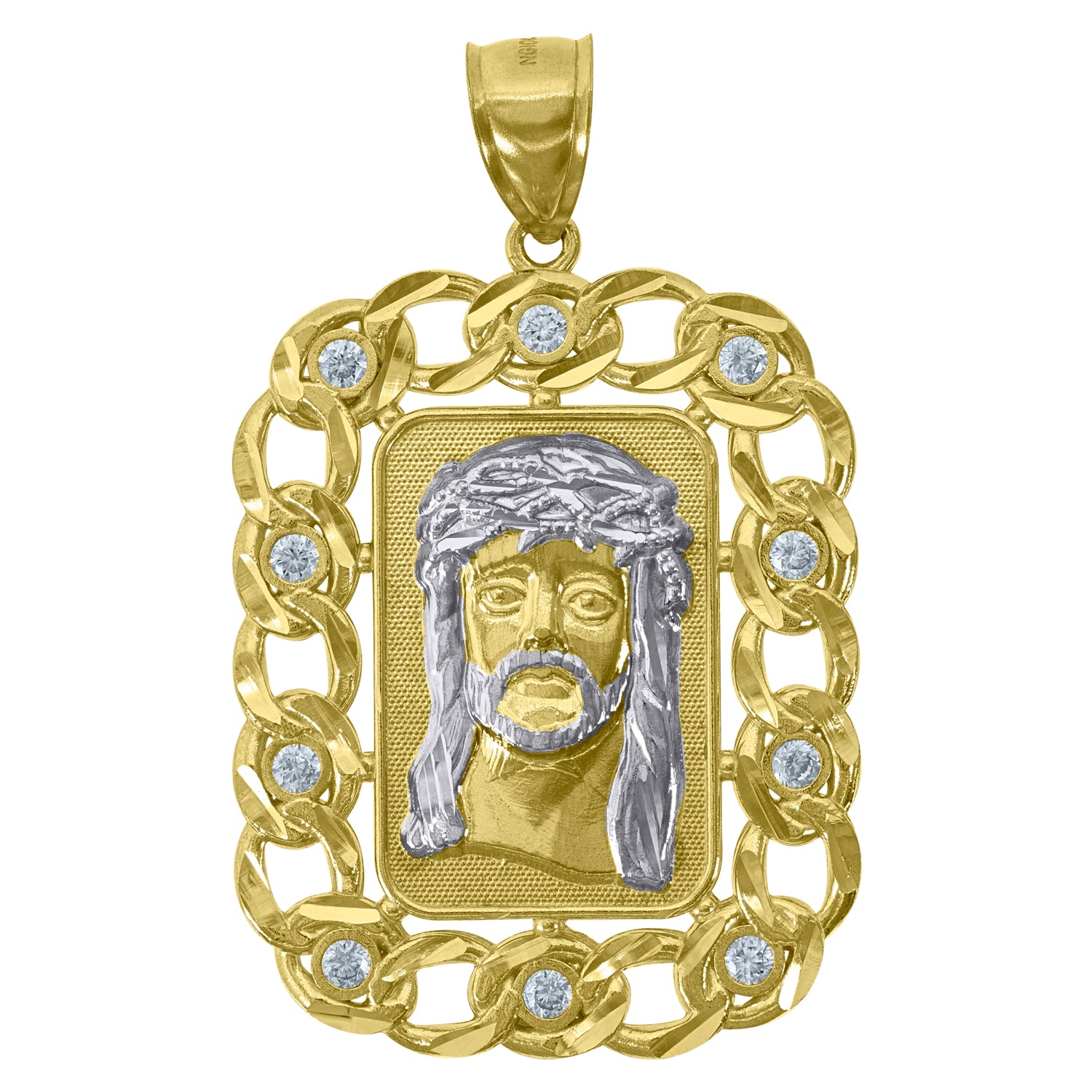 10kt Two-tone Gold Mens Cubic-zirconia Diamond-cut Jesus Head Cuban Border Religious Charm Pendant