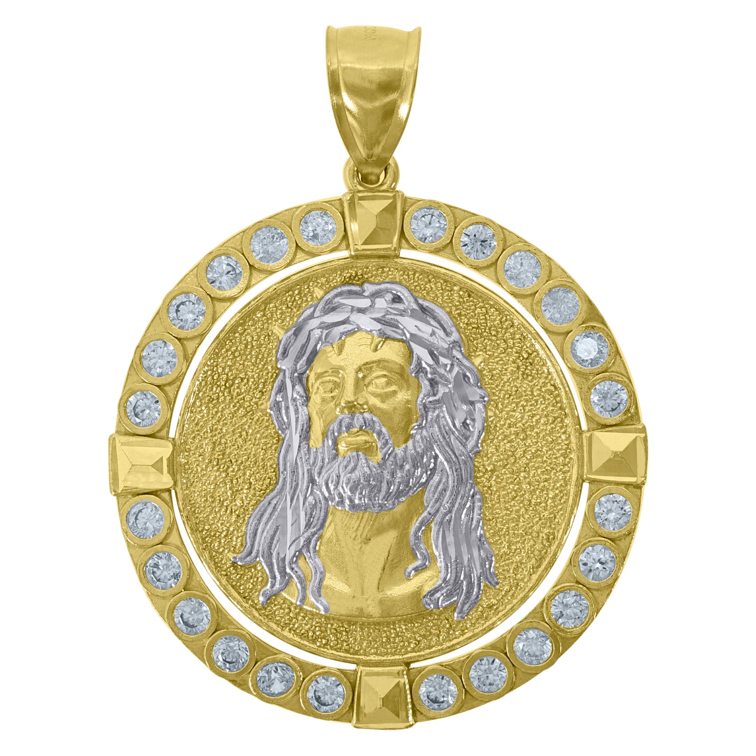 10kt Two-tone Gold Mens Cubic-zirconia Diamond-cut Jesus Face Religious Charm Pendant