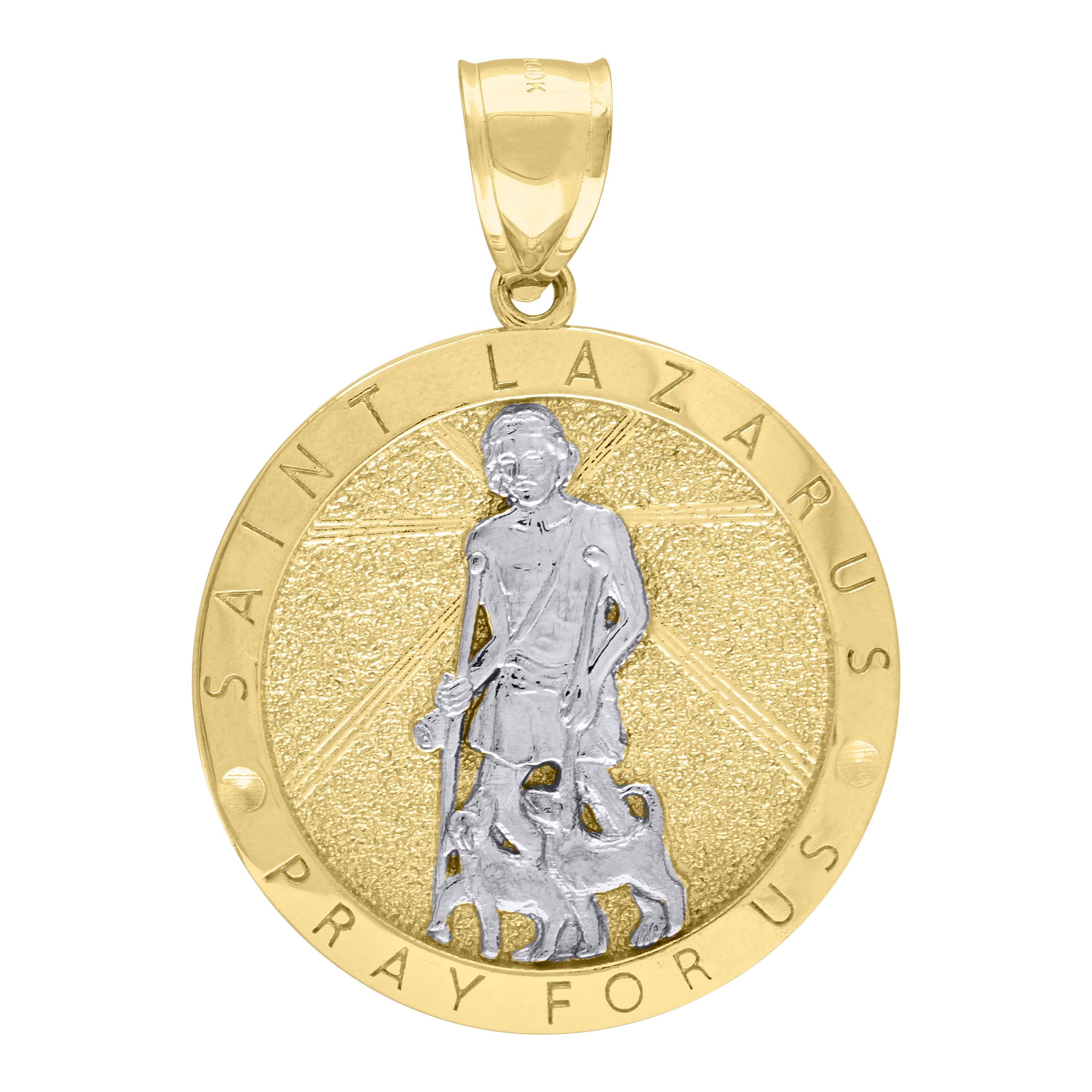 10KT Two-Tone Gold Mens Saints St. Lazarus Pray For Us Religious Charm Pendant