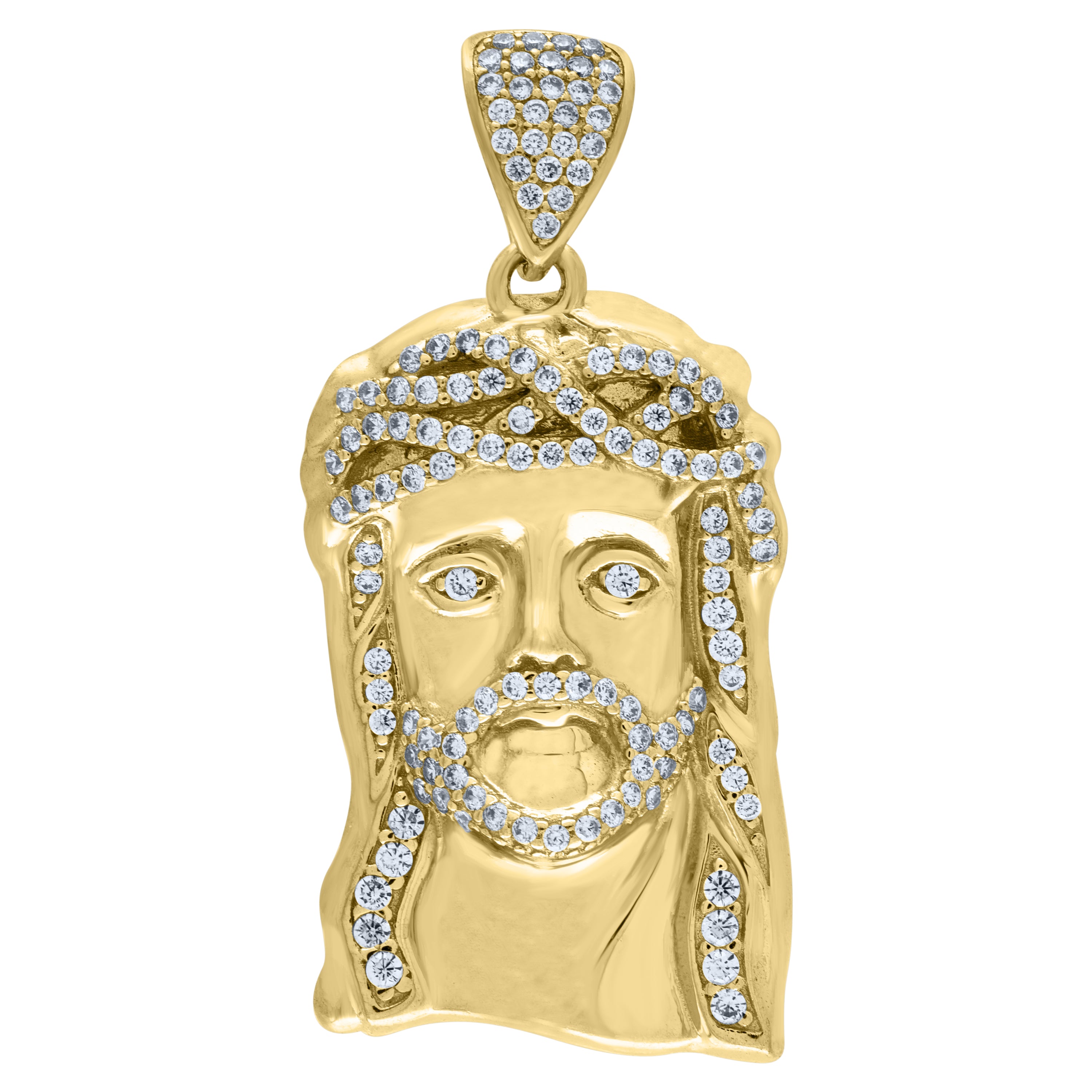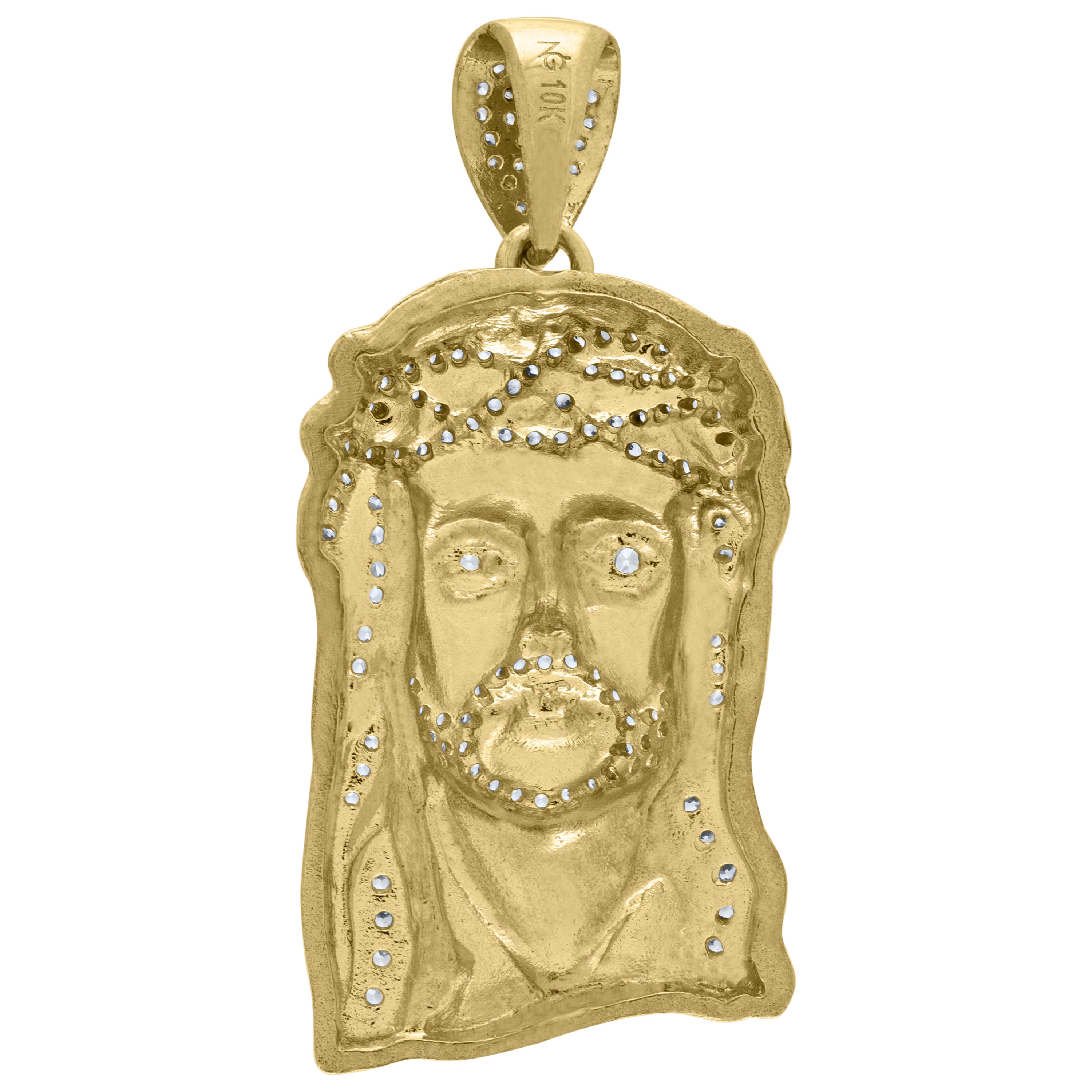 10kt Yellow Gold Mens Cubic Zirconia Jesus Religious Charm Pendant
