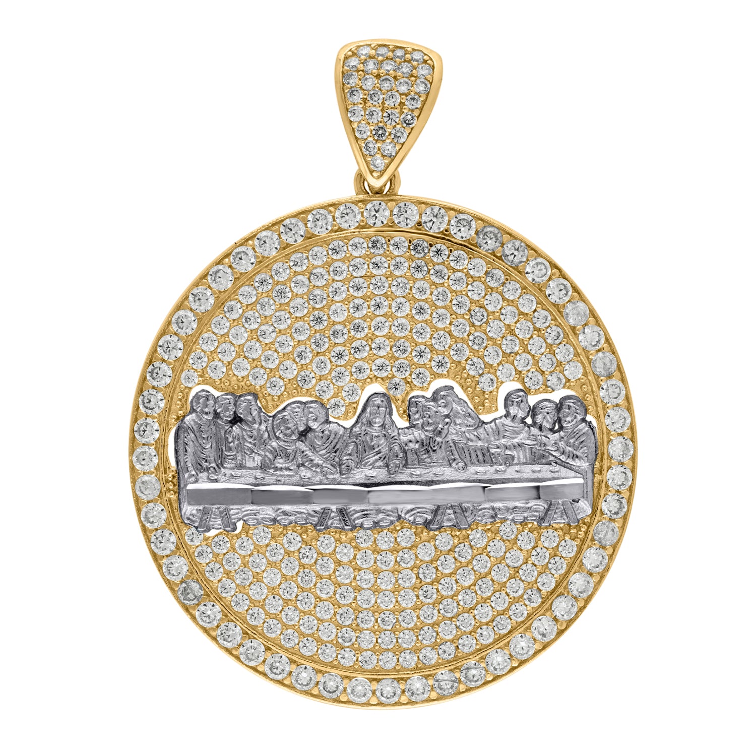 10kt Two-tone Gold Mens Women Cubic Zirconia Cubic-zirconia Last Supper Religious Charm Pendant