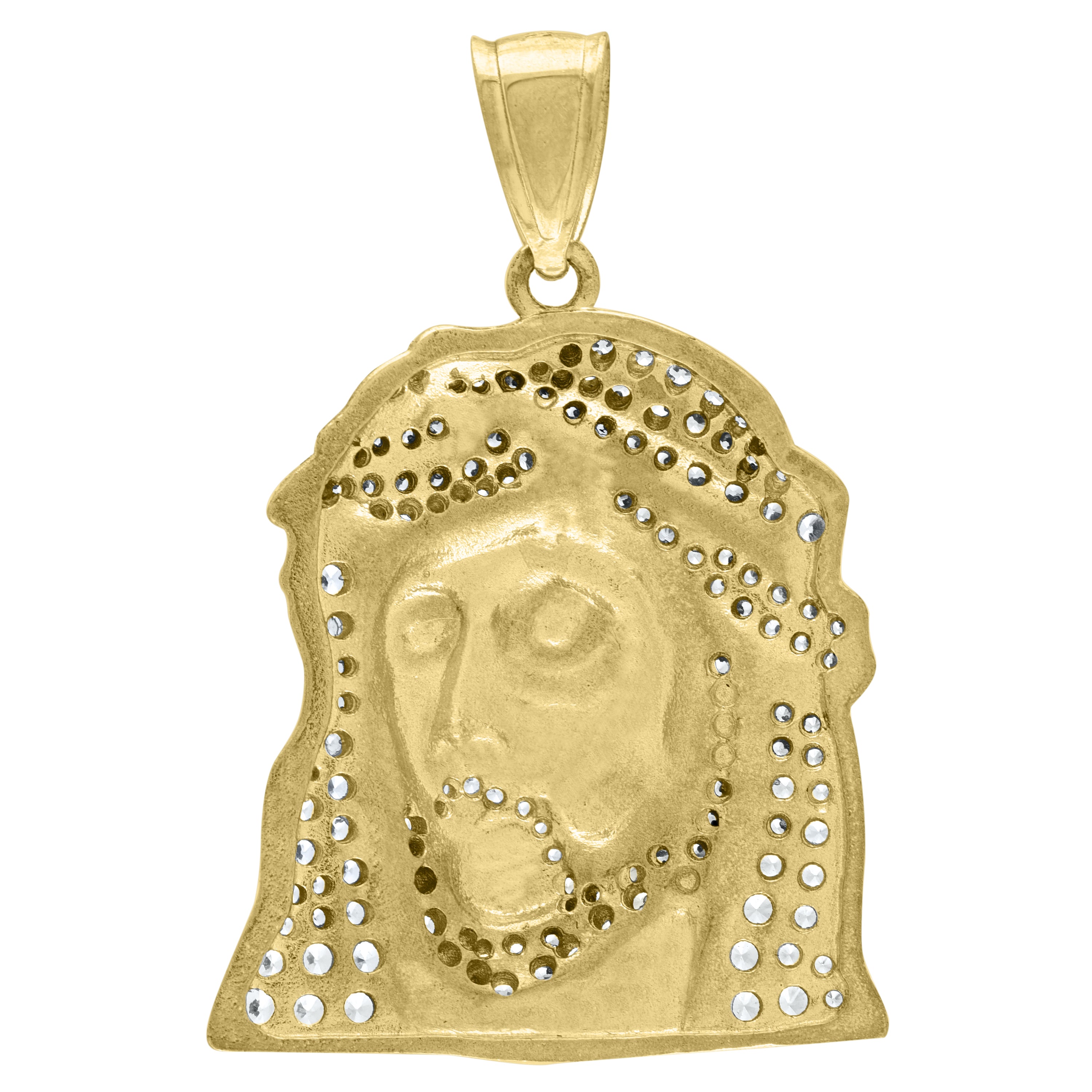 10kt Two-Tone Gold Mens Cubic Zirconia Jesus Religious Charm Pendant