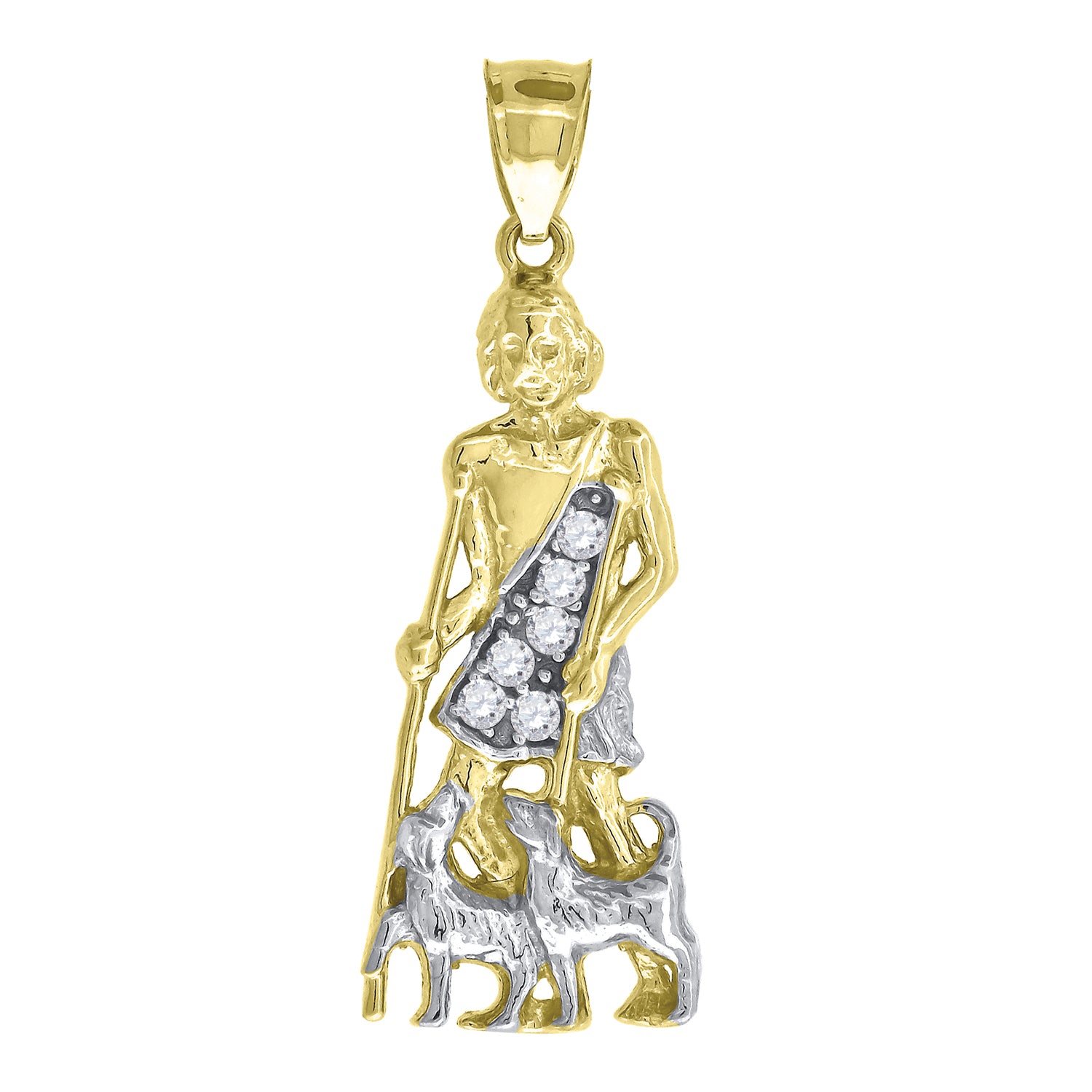 10kt Two-tone Gold Mens Cubic-zirconia Saint Lazarus With Two Dogs Religious Charm Pendant