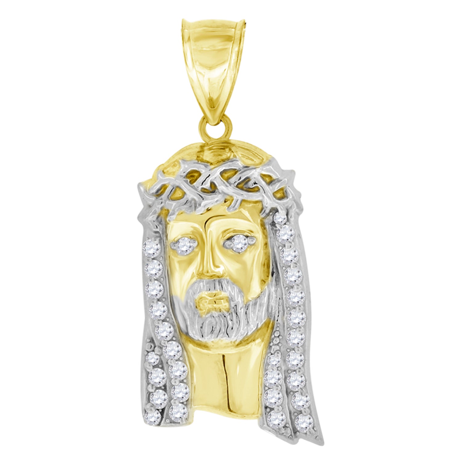 10kt Two-tone Gold Mens Women Cubic Zirconia Cubic-zirconia Jesus Face Religious Charm Pendant