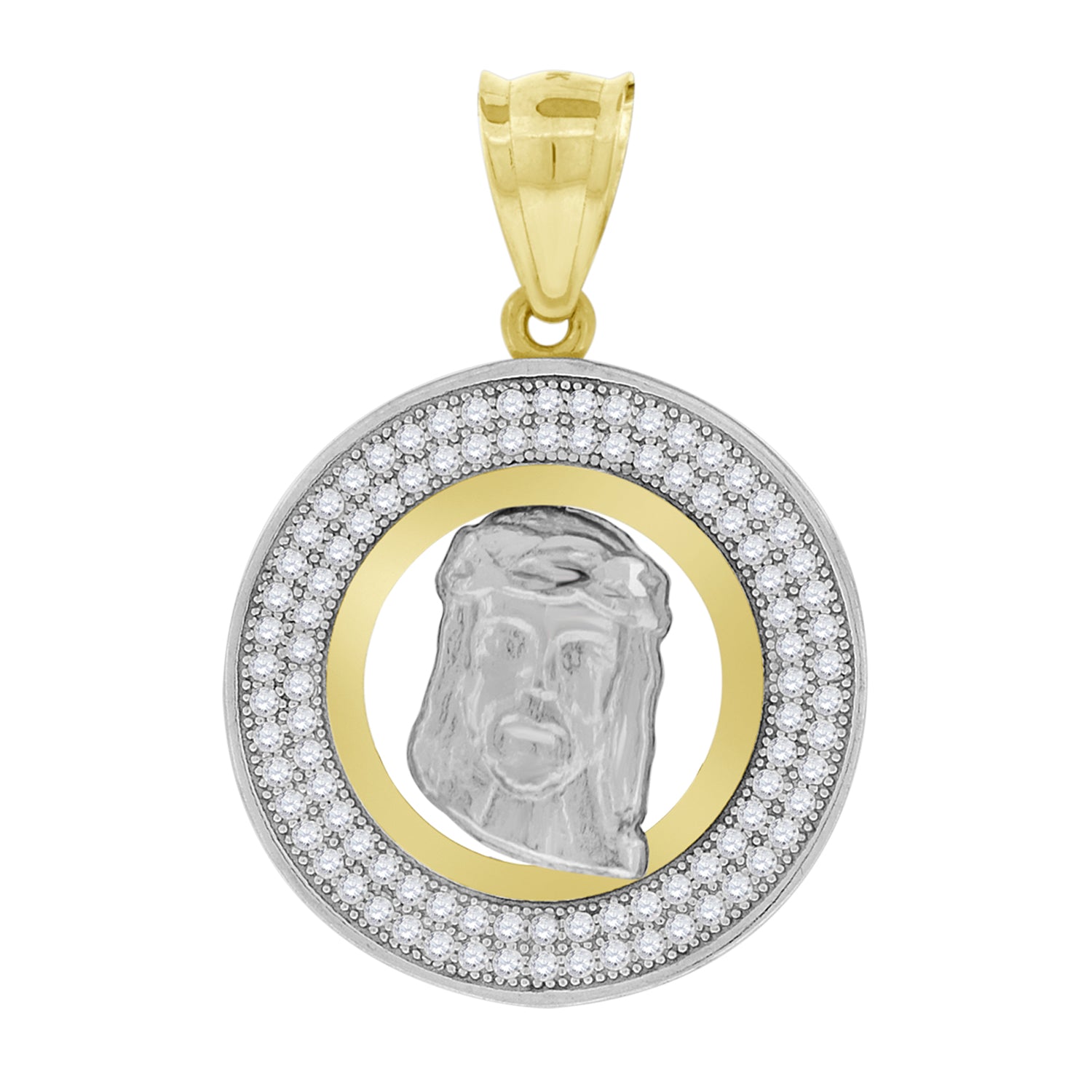 10kt Two-tone Gold Mens Women Cubic Zirconia Cubic-zirconia Jesus Christ Religious Charm Pendant