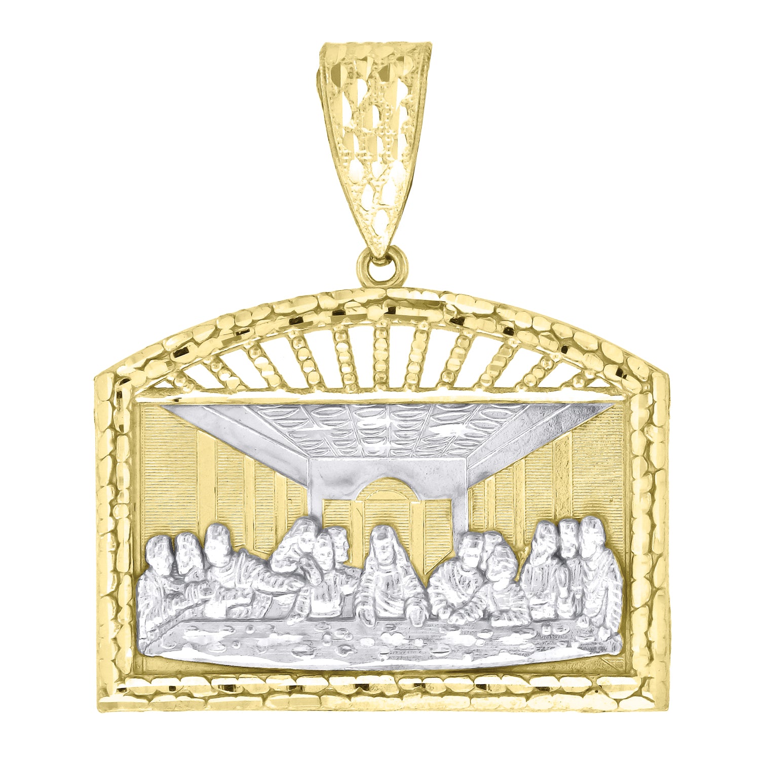 10kt Two-tone Gold Mens Women Textured Last Supper Religious Charm Pendant