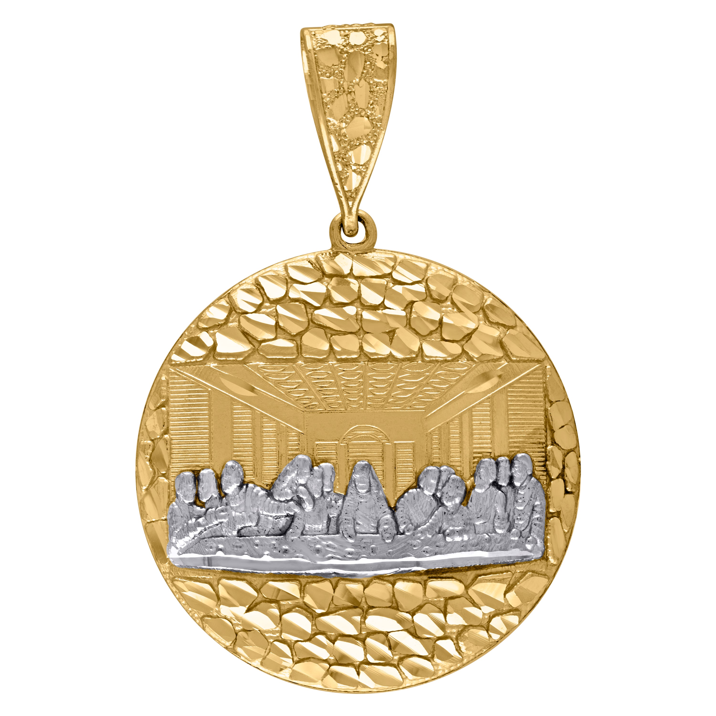 10kt Two-tone Gold Mens Diamond-cut Nugget Last Supper Religious Charm Pendant