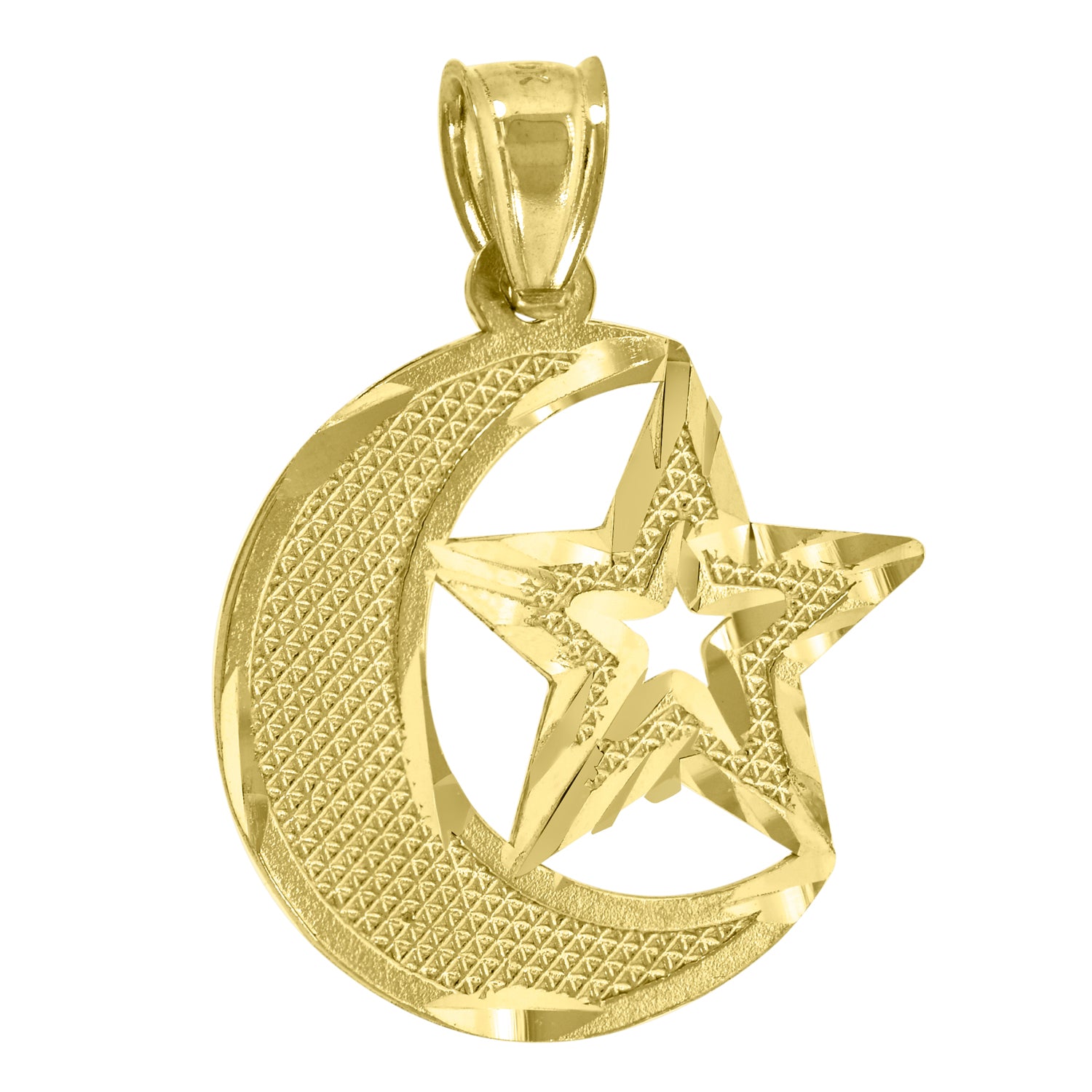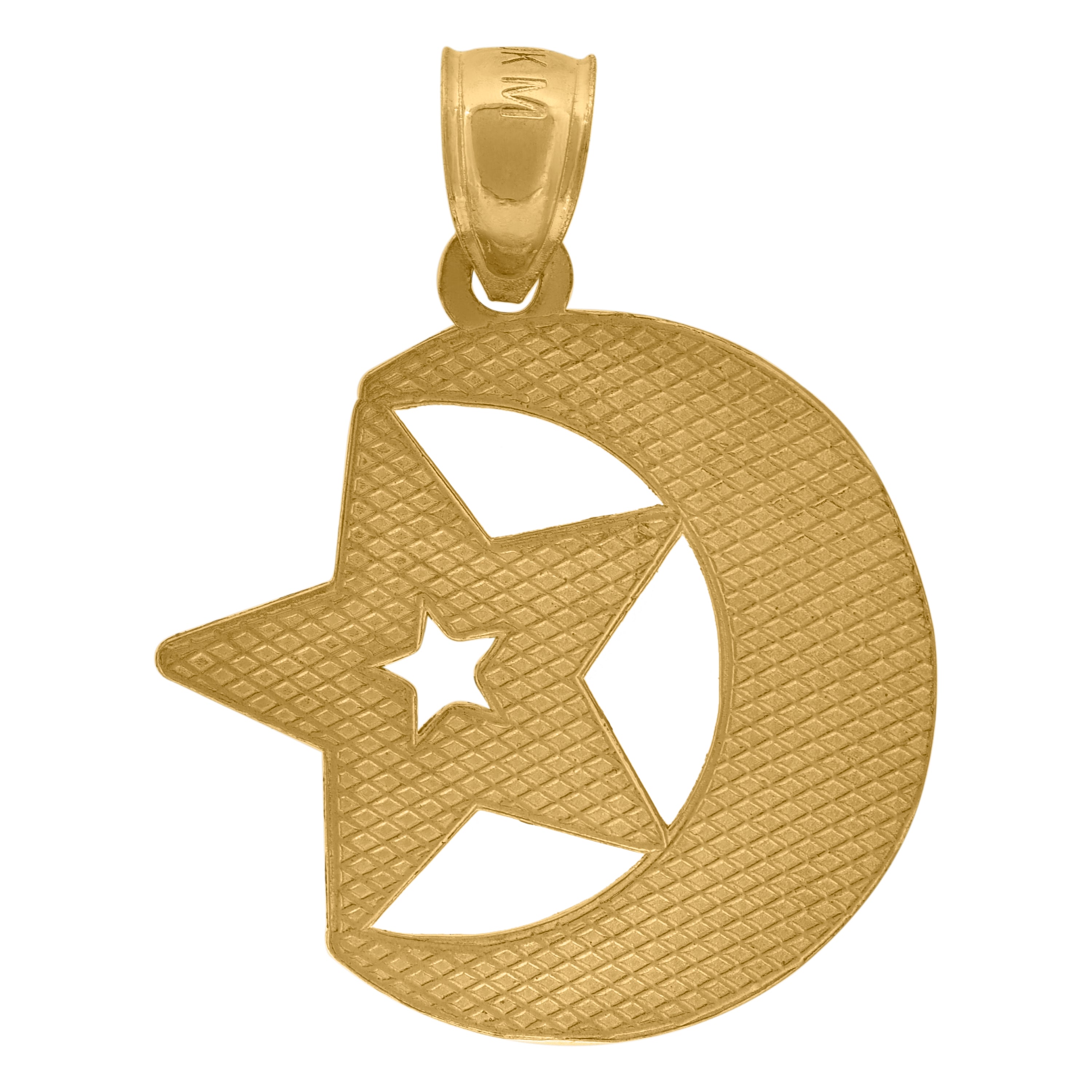 10KT Yellow Gold Mens Moon & Star Celestial Religious Charm Pendant
