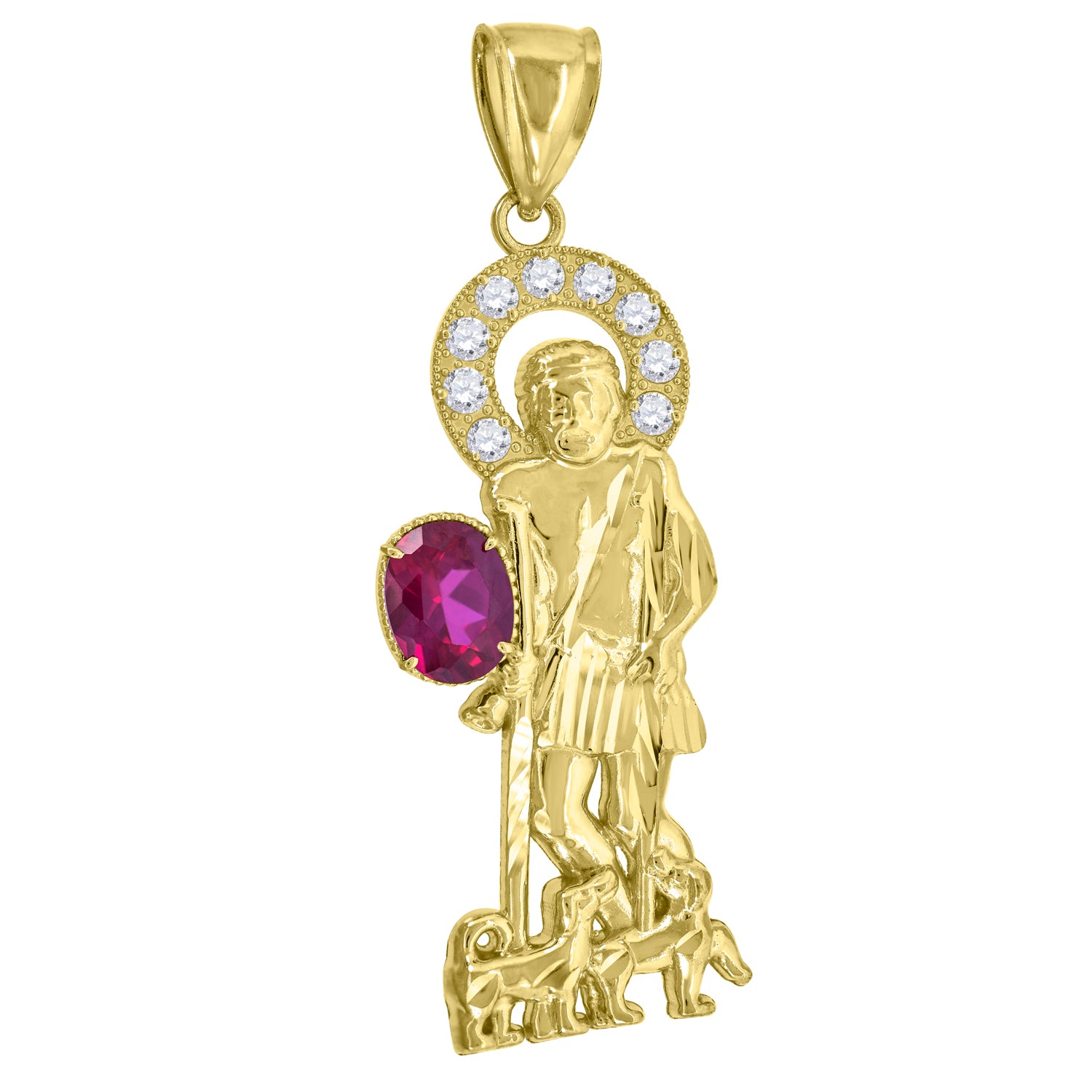10KT Yellow Gold Mens White Purple Cubic Zirconia Saints St. Lazarus Religious Charm Pendant
