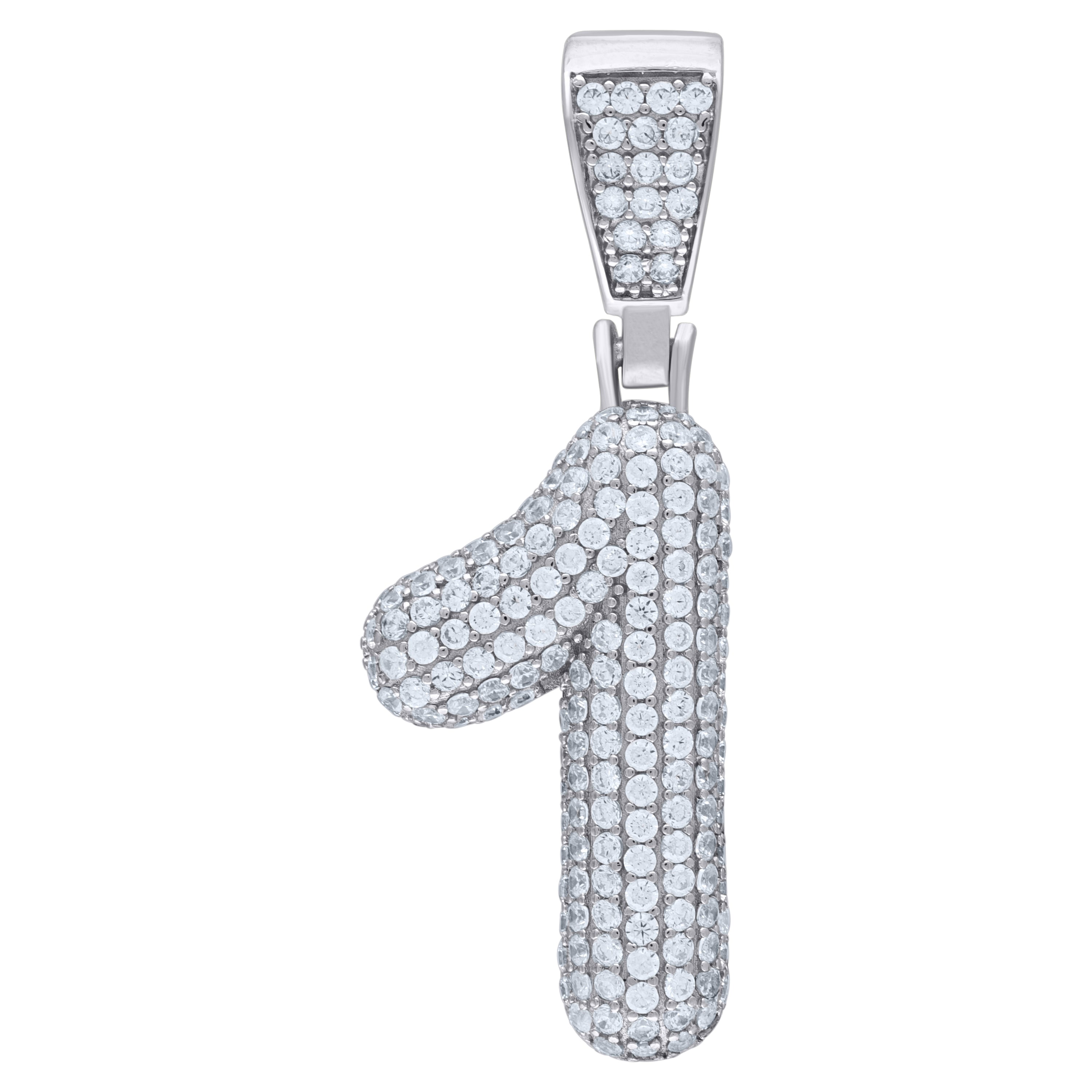 925 Sterling Silver Unisex CZ Initial Number 1 Charm Pendant