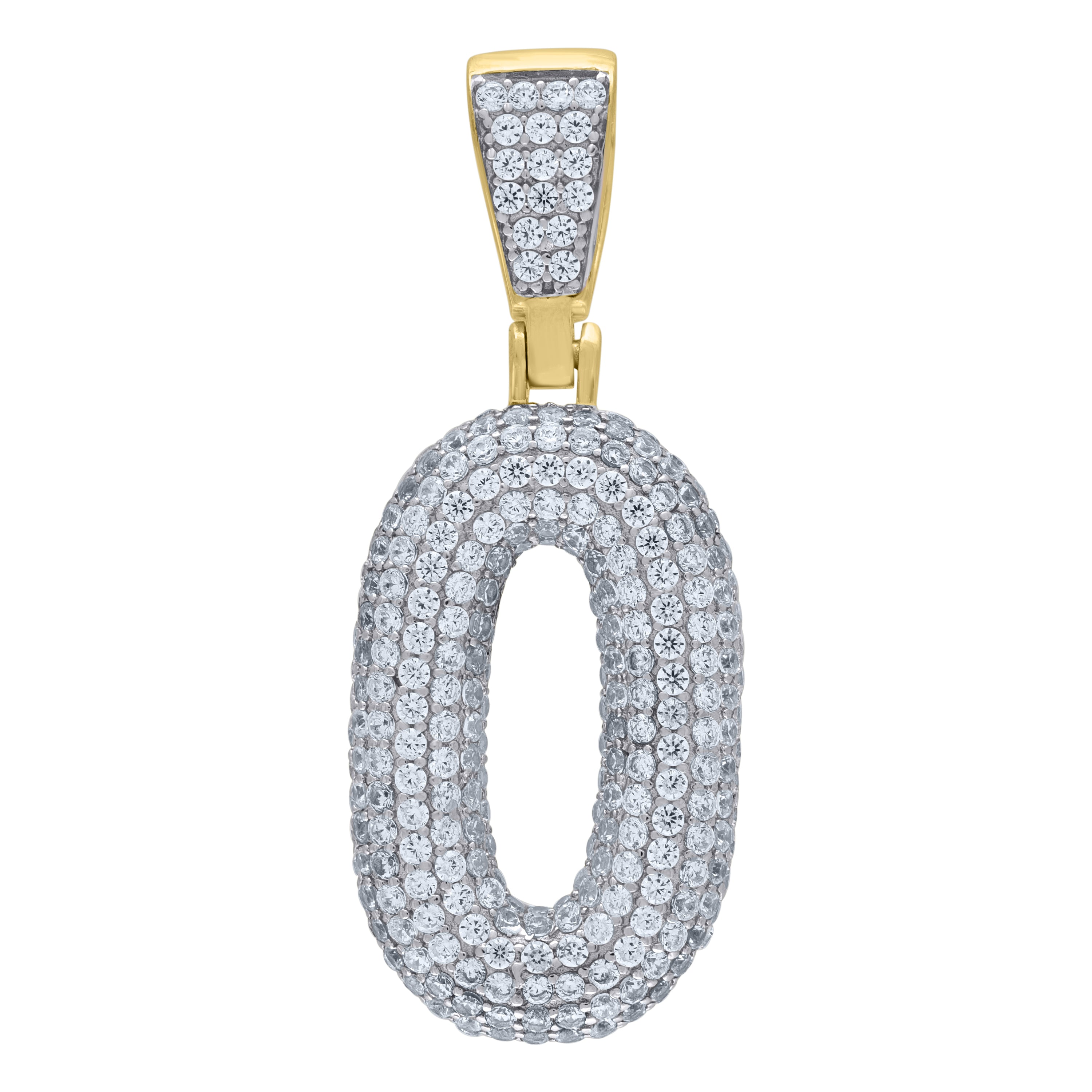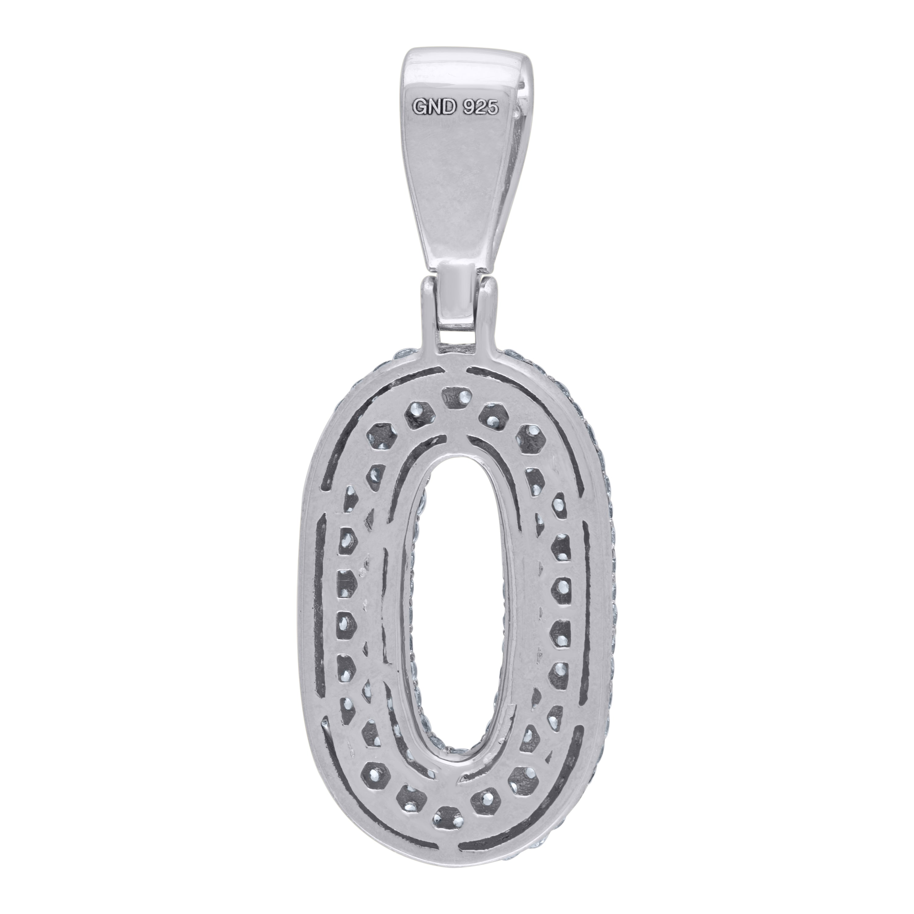 925 Sterling Silver Unisex CZ Initial Number 0 Charm Pendant