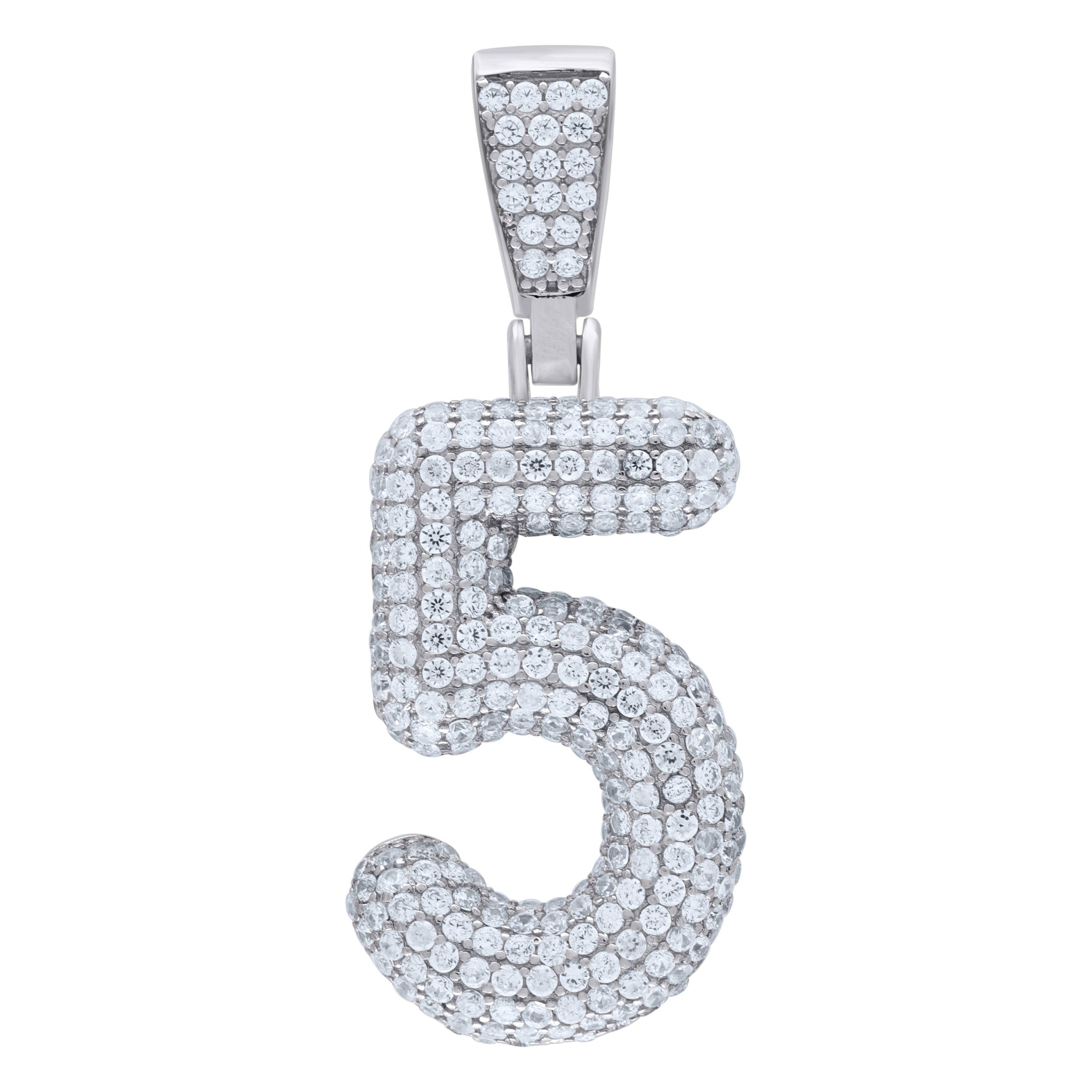 925 Sterling Silver Unisex CZ Initial Number 5 Charm Pendant