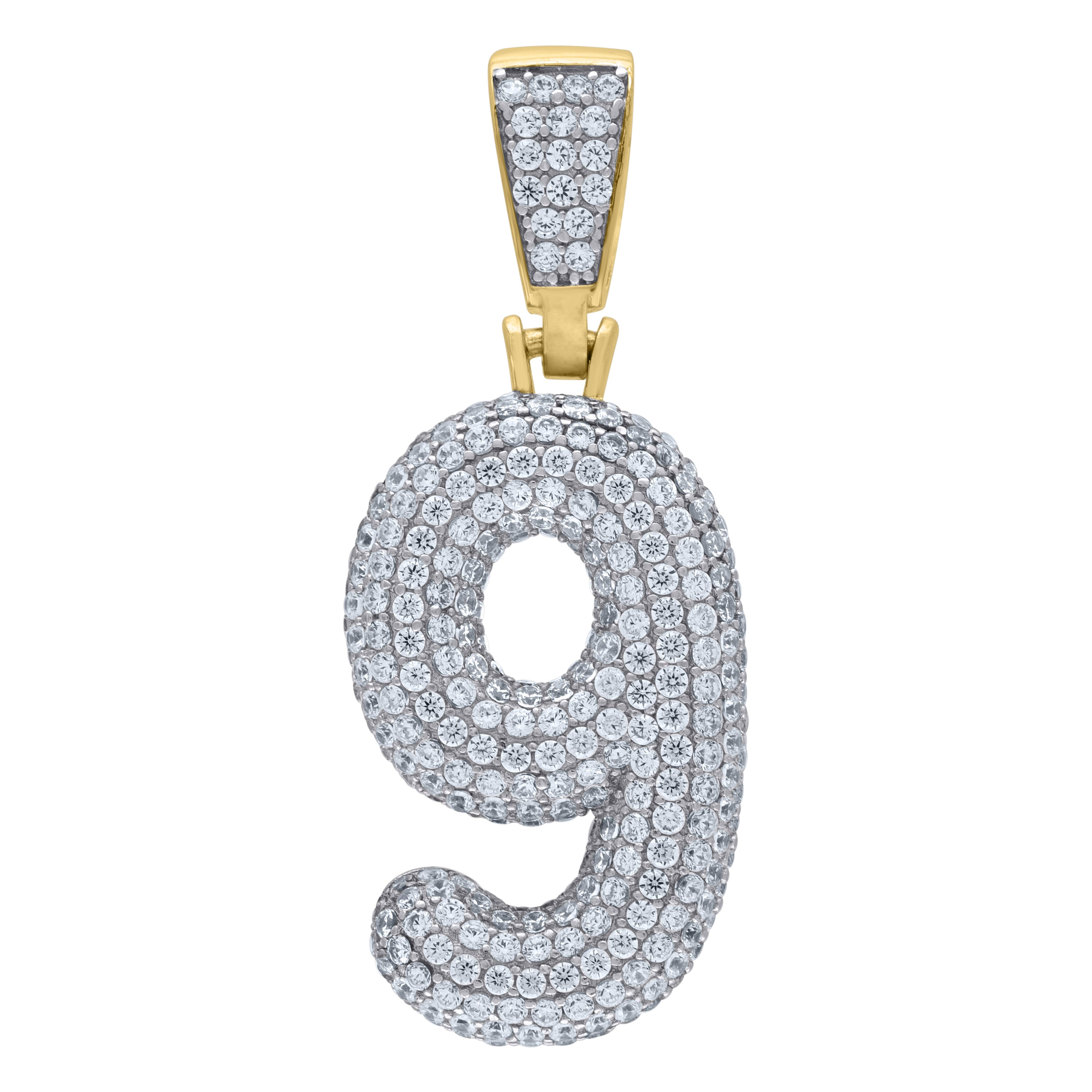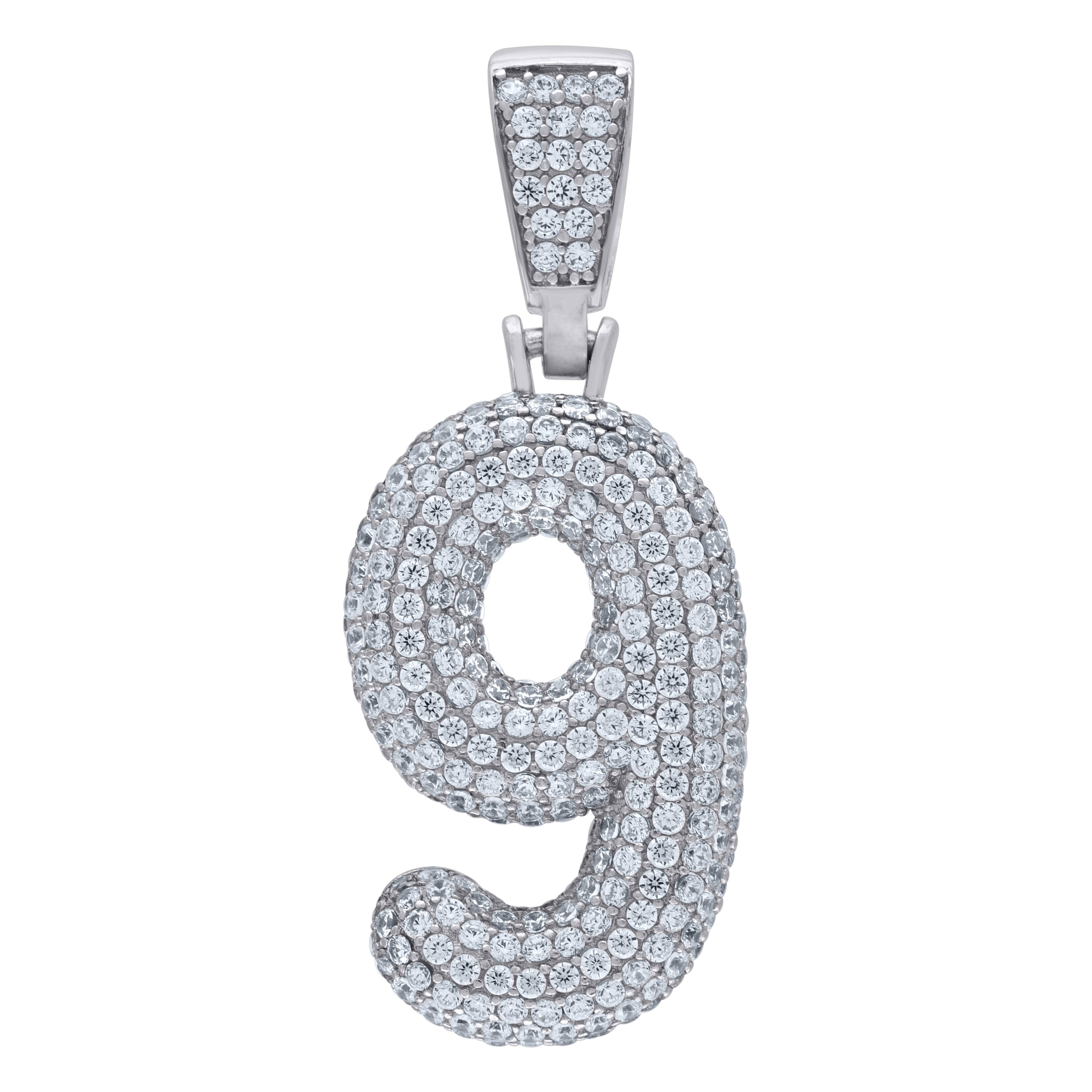 925 Sterling Silver Unisex CZ Initial Number 9 Charm Pendant