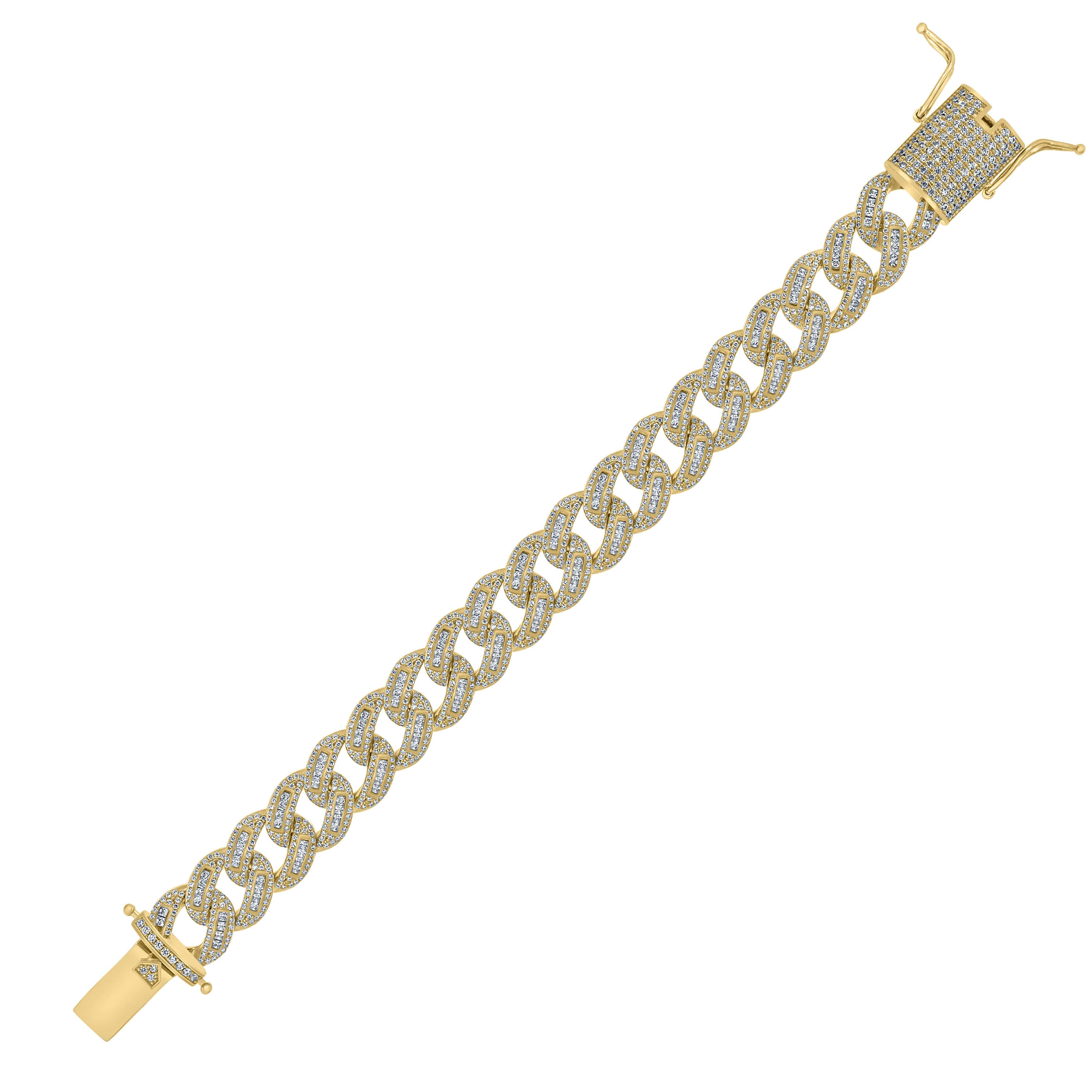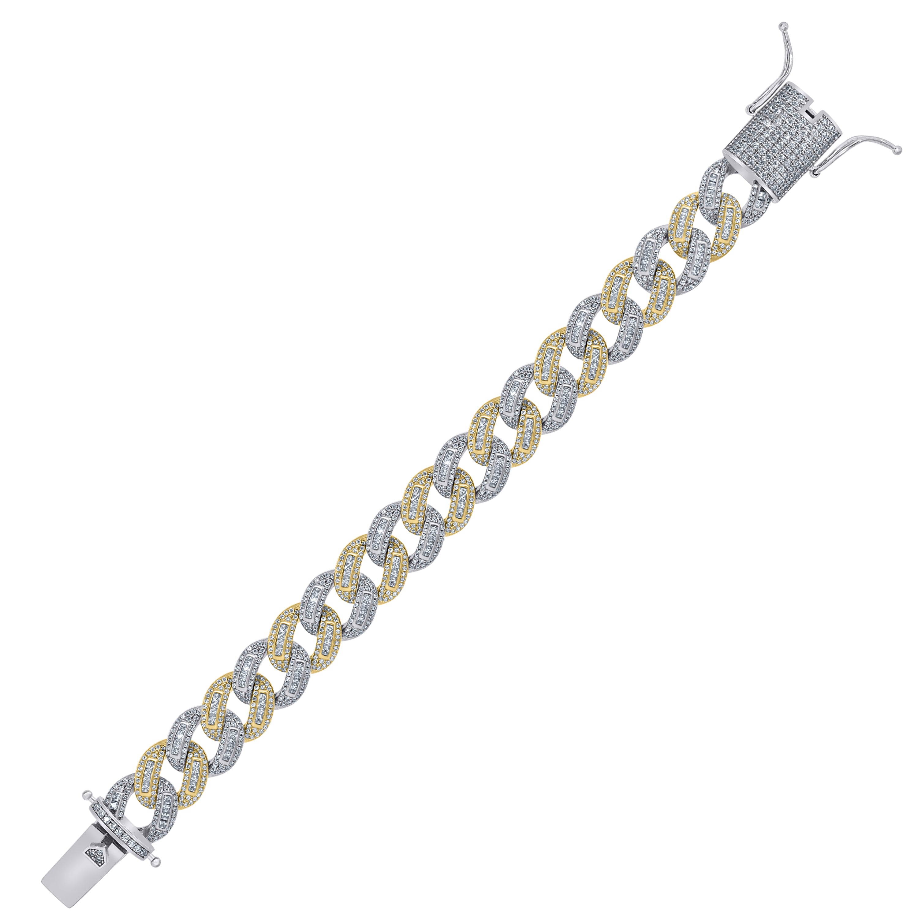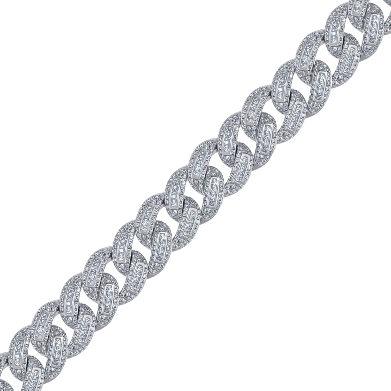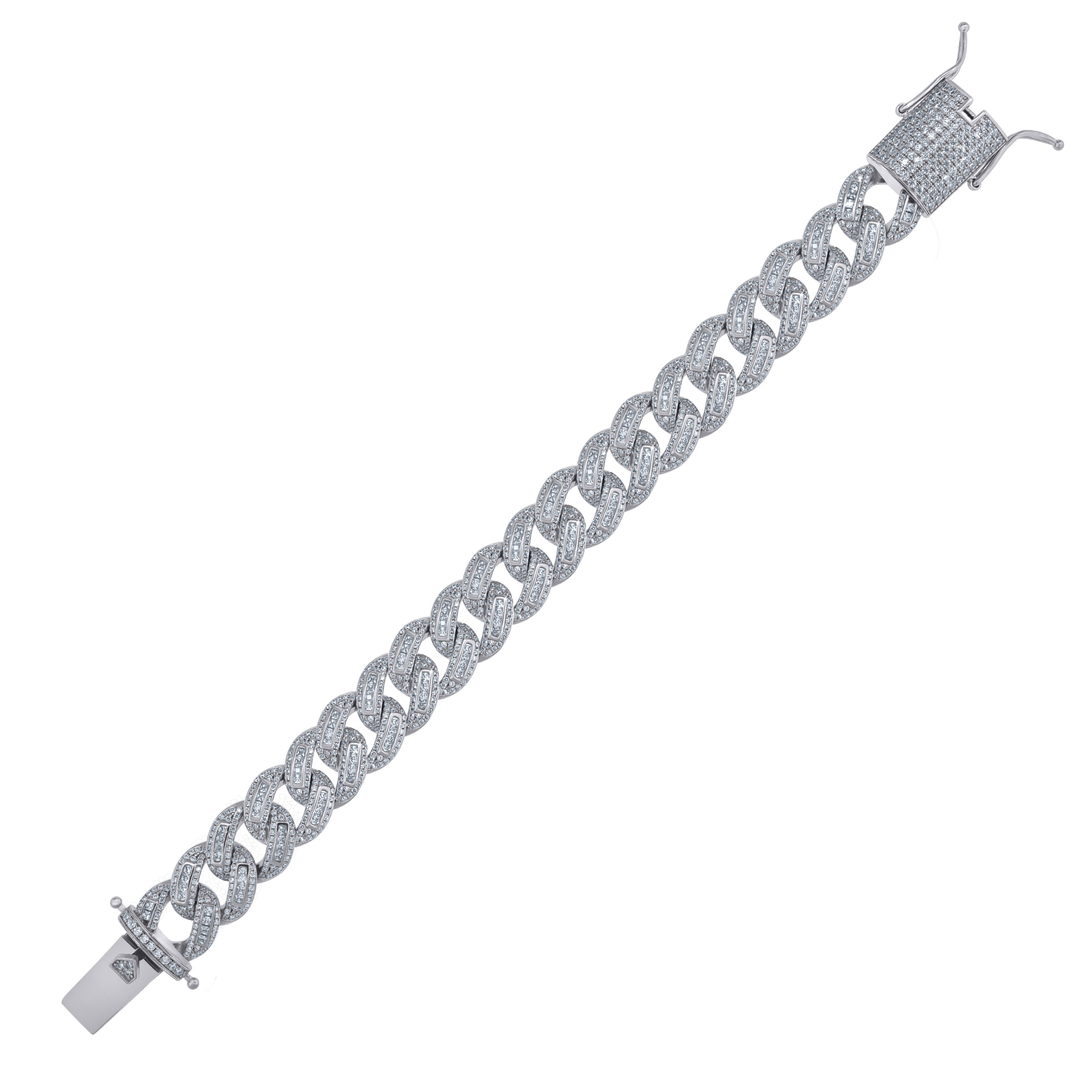 925 Sterling Silver Men Cubic Zirconia Cuban Baguette 15mm Bracelet Size 8 Inches