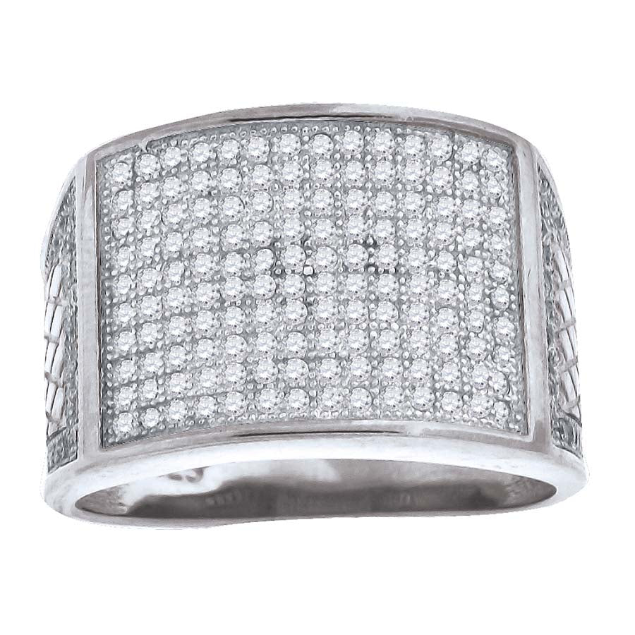 925 Sterling Silver Mens Cubic Zirconia Rectangle Face Wide Band Engagement Ring