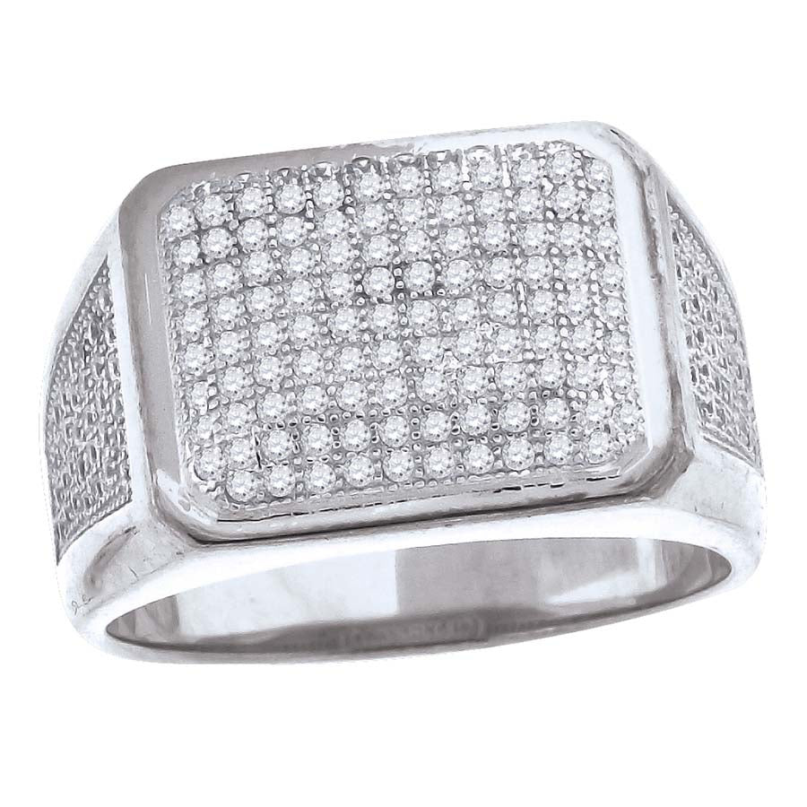 925 Sterling Silver Mens Cubic Zirconia Rectangle Face Wide Band Engagement Ring Size 9