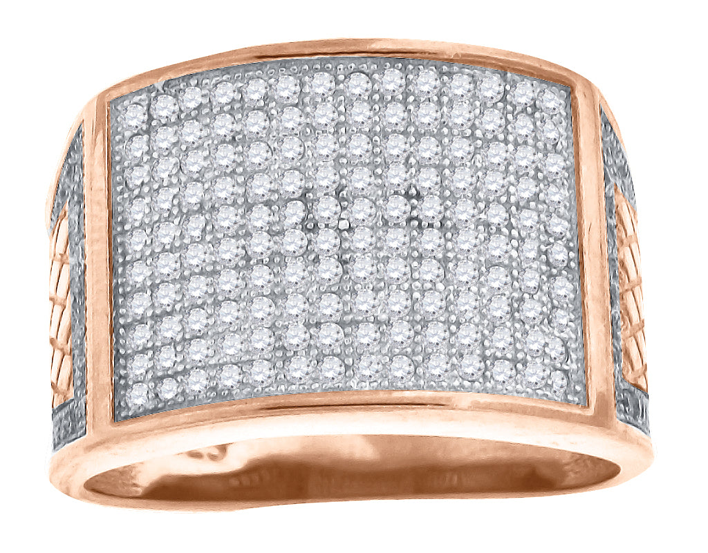 925 Sterling Silver Rose-Tone Mens Cubic Zirconia Rectangle Face Wide Band Engagement Ring