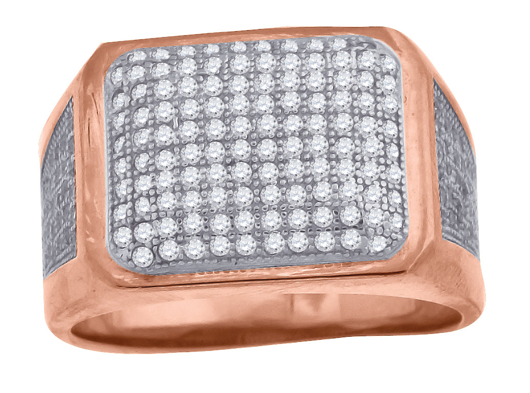 925 Sterling Silver Rose-Tone Mens Cubic Zirconia Rectangle Face Wide Band Engagement Ring