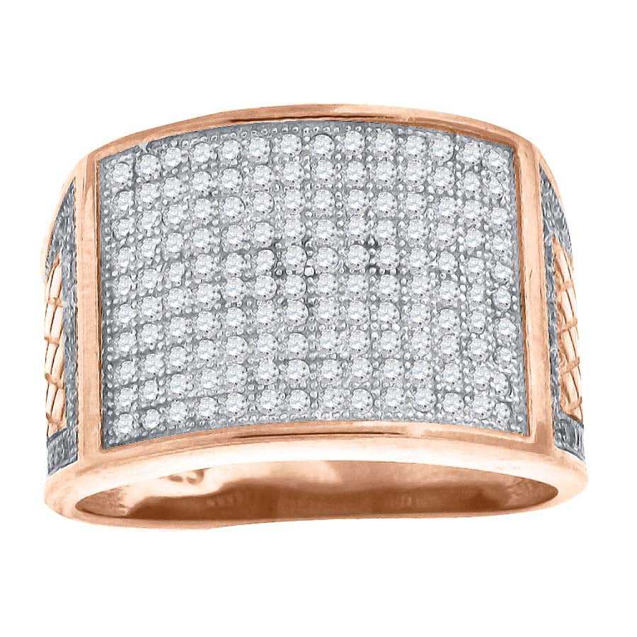 925 Sterling Silver Rose-Tone Mens Cubic Zirconia Rectangle Face Wide Band Engagement Ring Size 9
