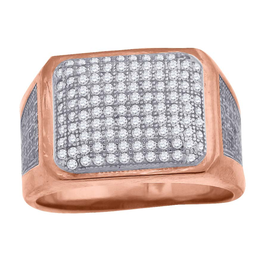 925 Sterling Silver Rose-Tone Mens Cubic Zirconia Rectangle Face Wide Band Engagement Ring Size 11