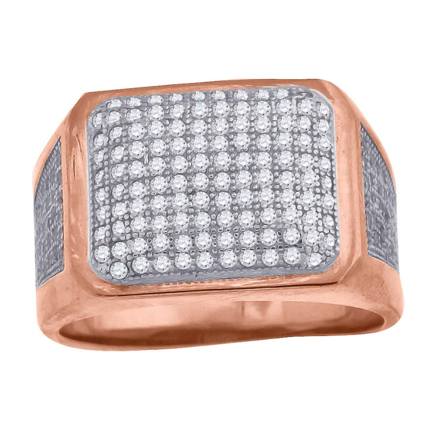925 Sterling Silver Rose-Tone Mens Cubic Zirconia Rectangle Face Wide Band Engagement Ring Size 9