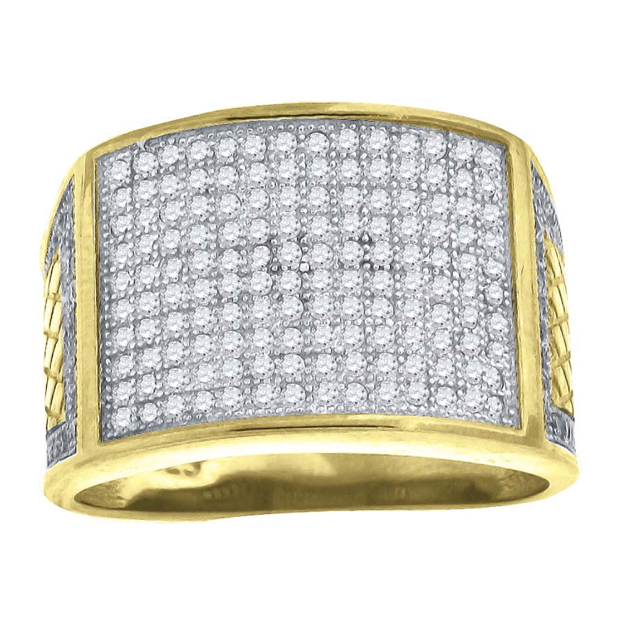 925 Sterling Silver Yellow-Tone Mens Cubic Zirconia Rectangle Face Wide Band Engagement Ring Size 9