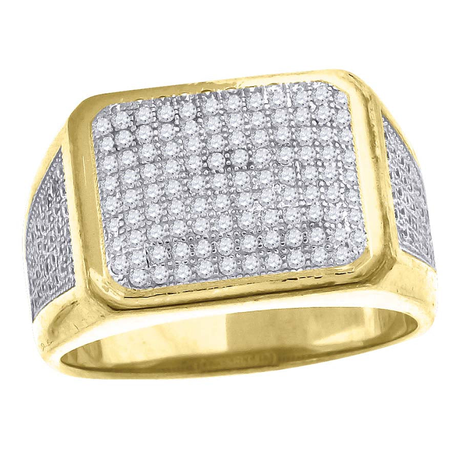 925 Sterling Silver Yellow-Tone Mens Cubic Zirconia Rectangle Face Wide Band Engagement Ring Size 11