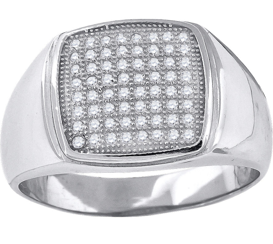 925 Sterling Silver Mens Cubic Zirconia Square Head Fashion Ring Size 9