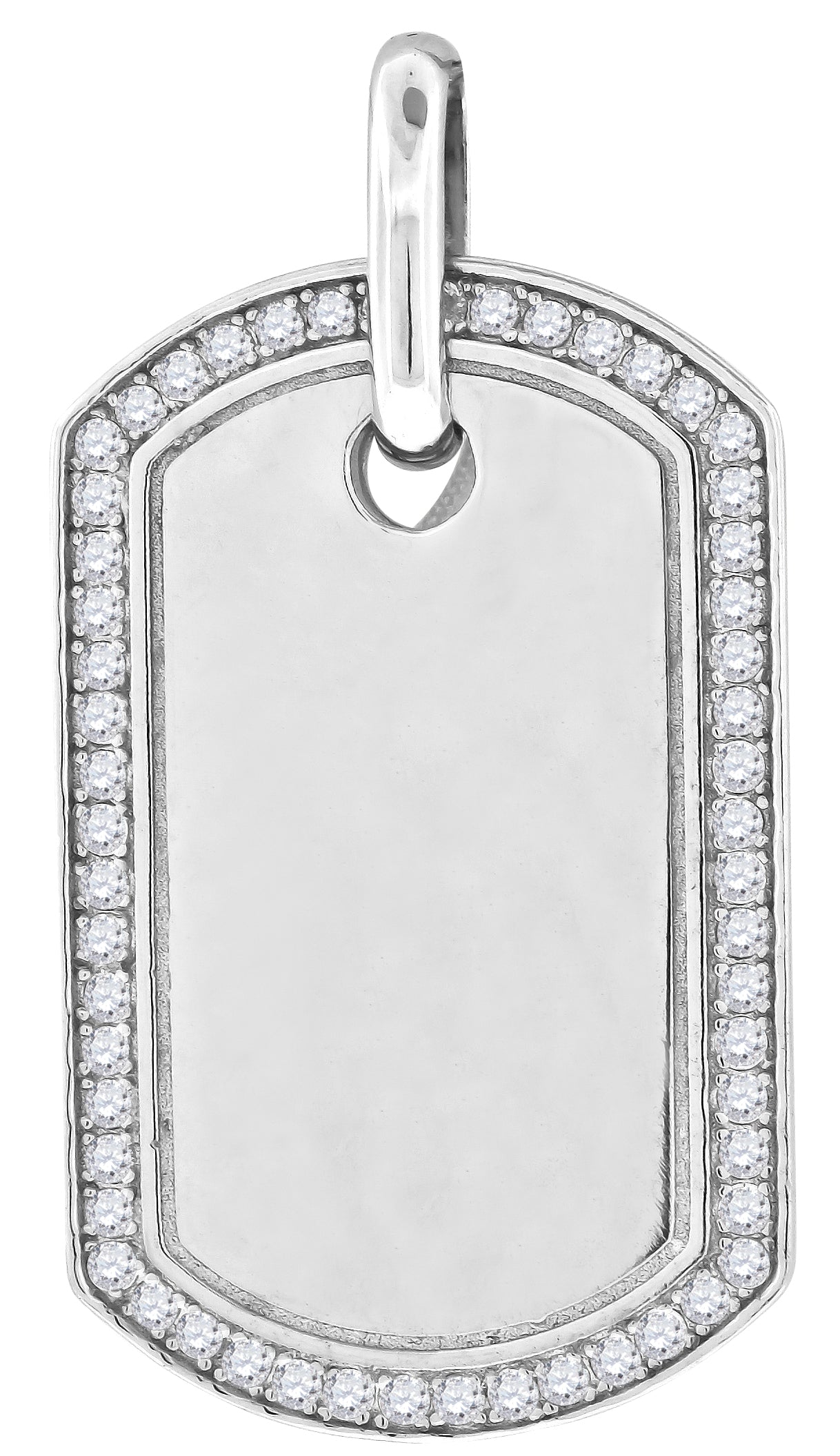925 Sterling Silver Mens Cubic Zirconia Dogtag Charm Pendant