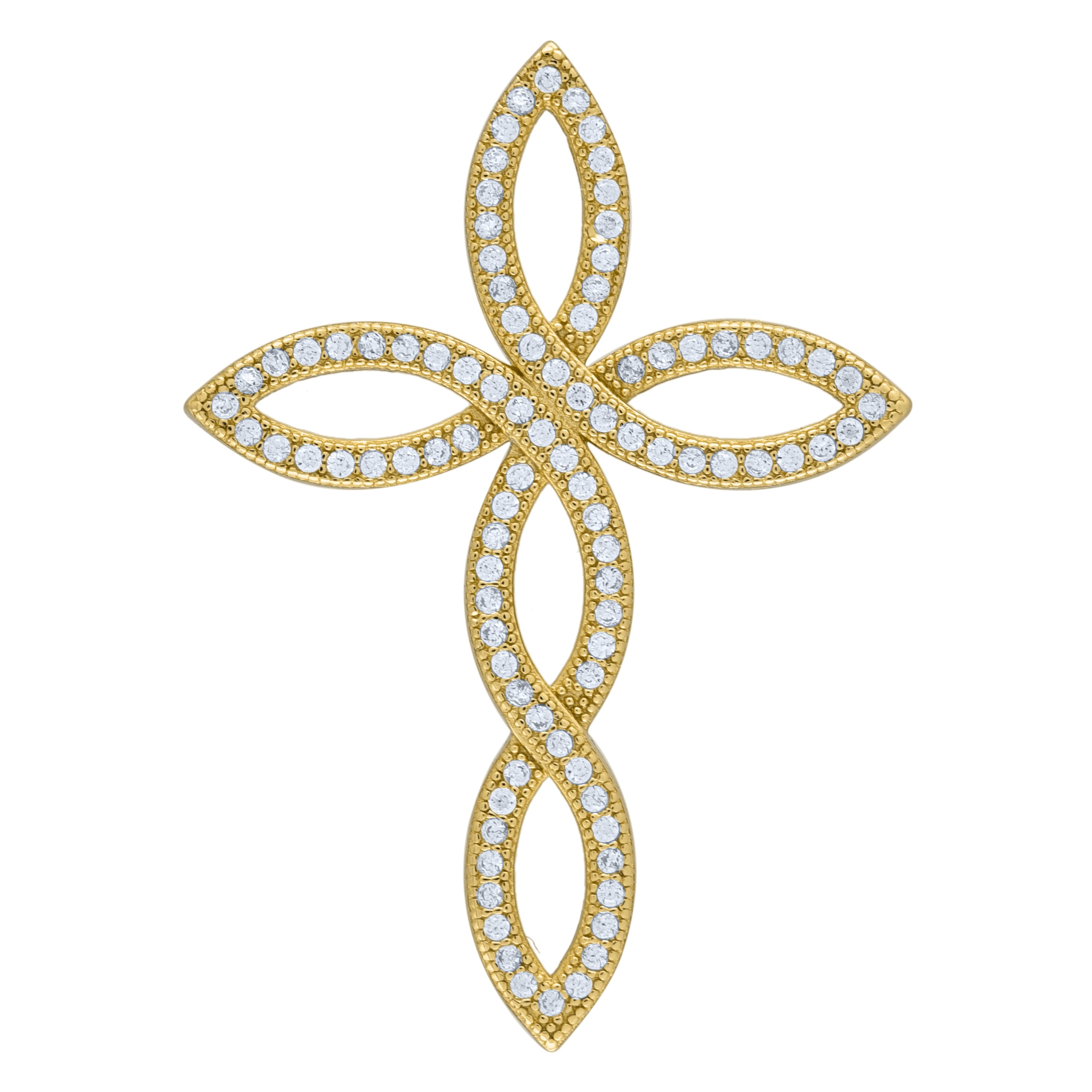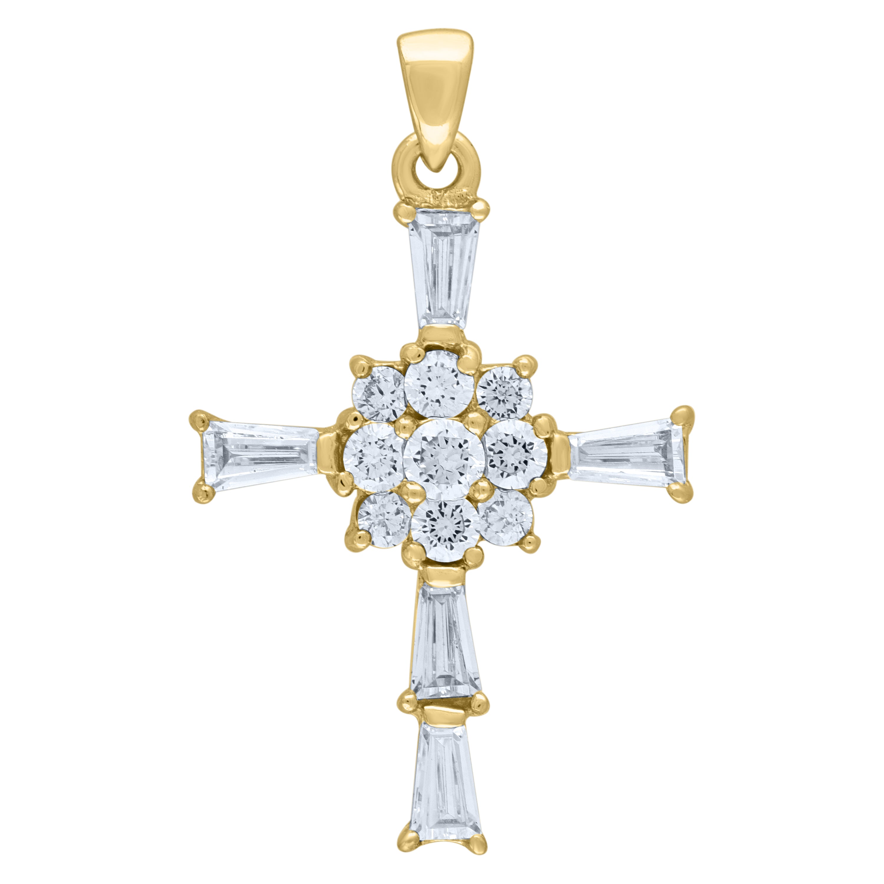 925 Sterling Silver Yellow-Tone Mens Cubic Zirconia Cross Religious Charm Pendant