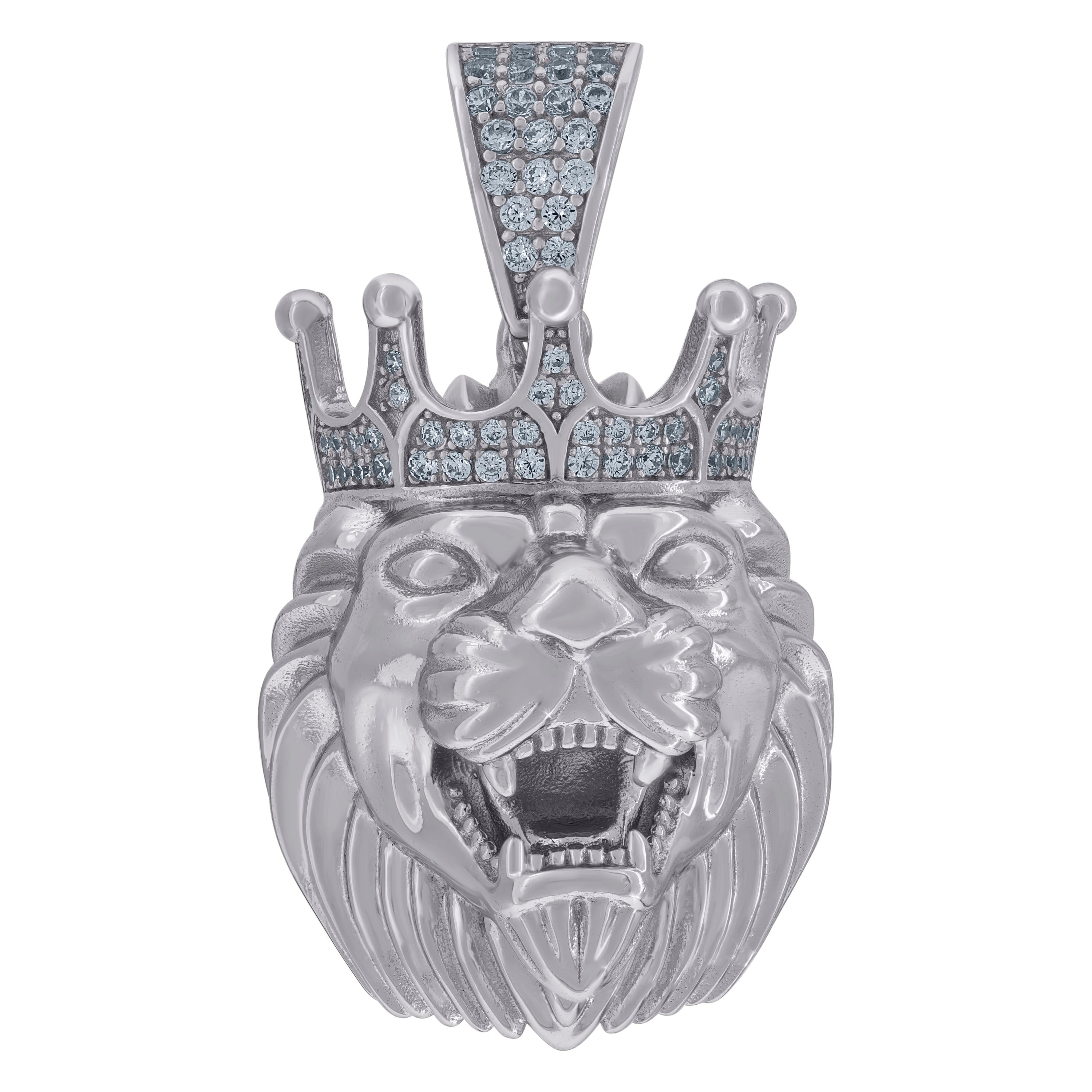925 Sterling Silver Mens Cubic Zirconia Animal Lion Charm Pendant