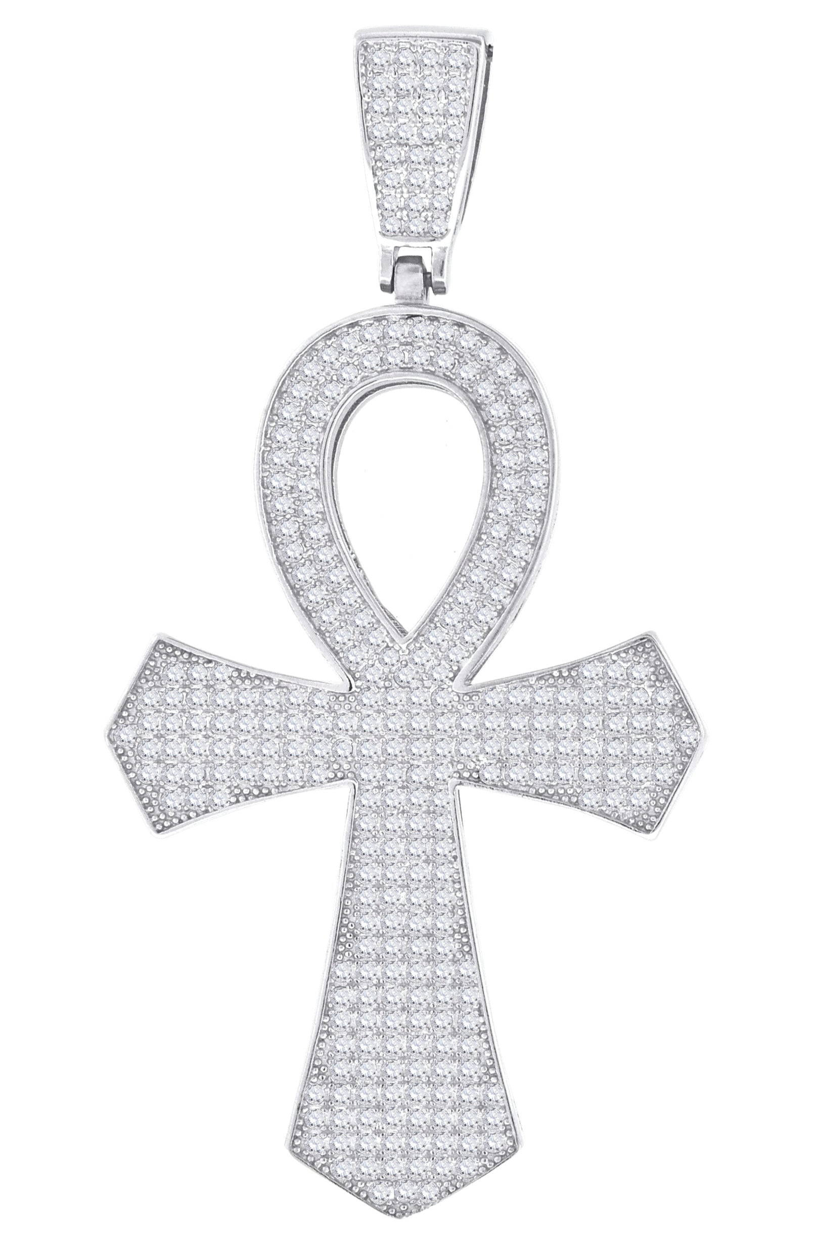 925 Sterling Silver Unisex CZ Ankh Cross Religious Charm Pendant