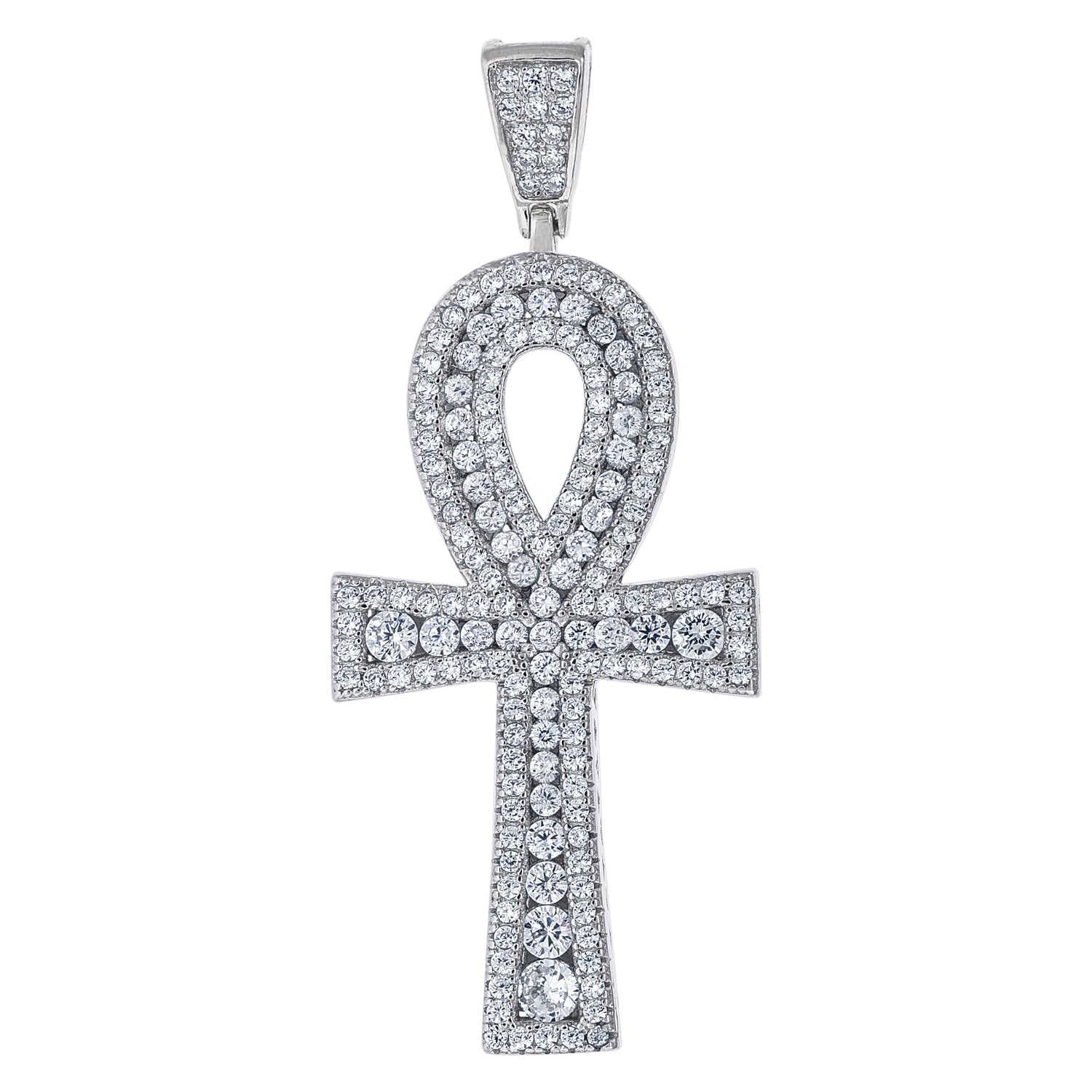 925 Sterling Silver Unisex CZ Ankh Cross Religious Charm Pendant