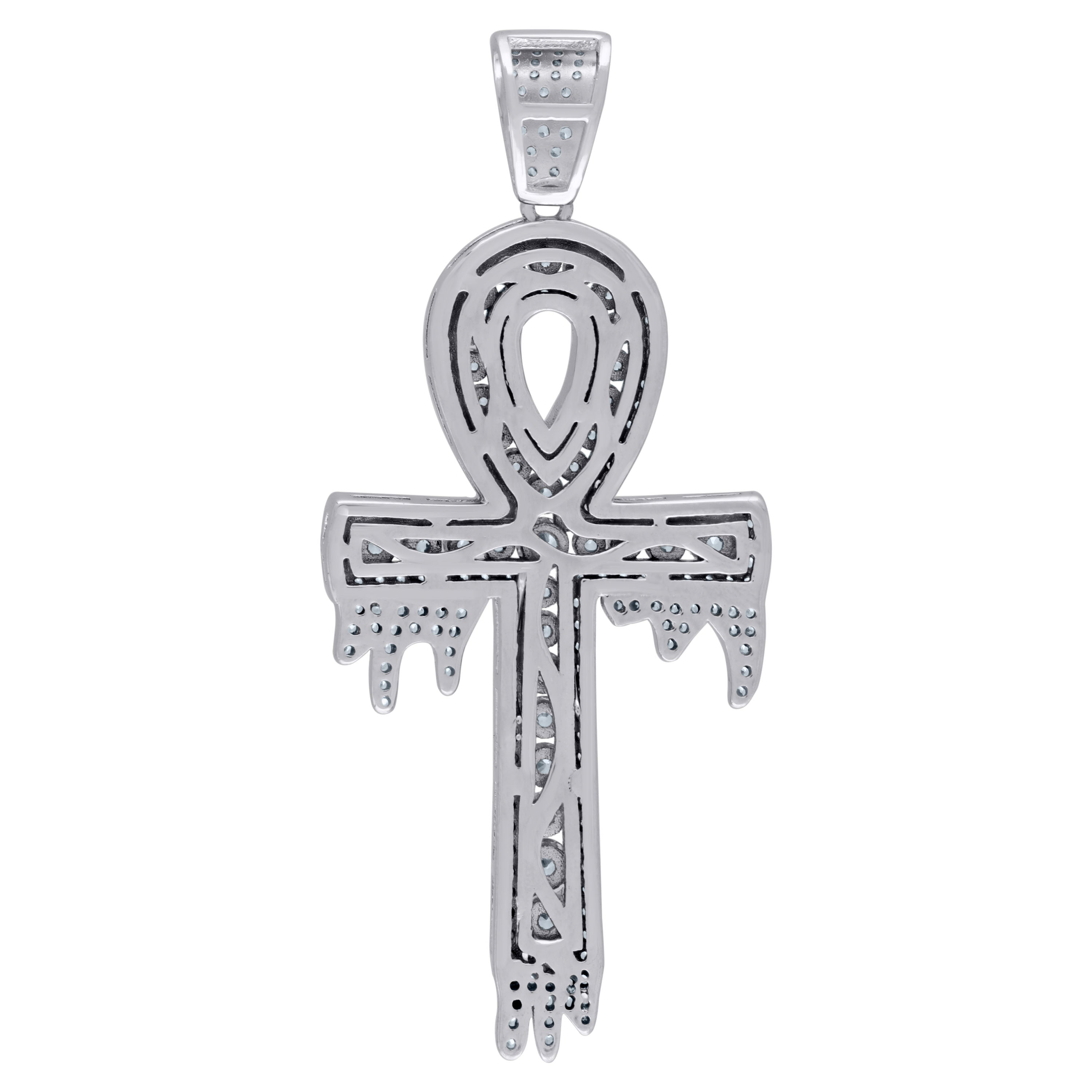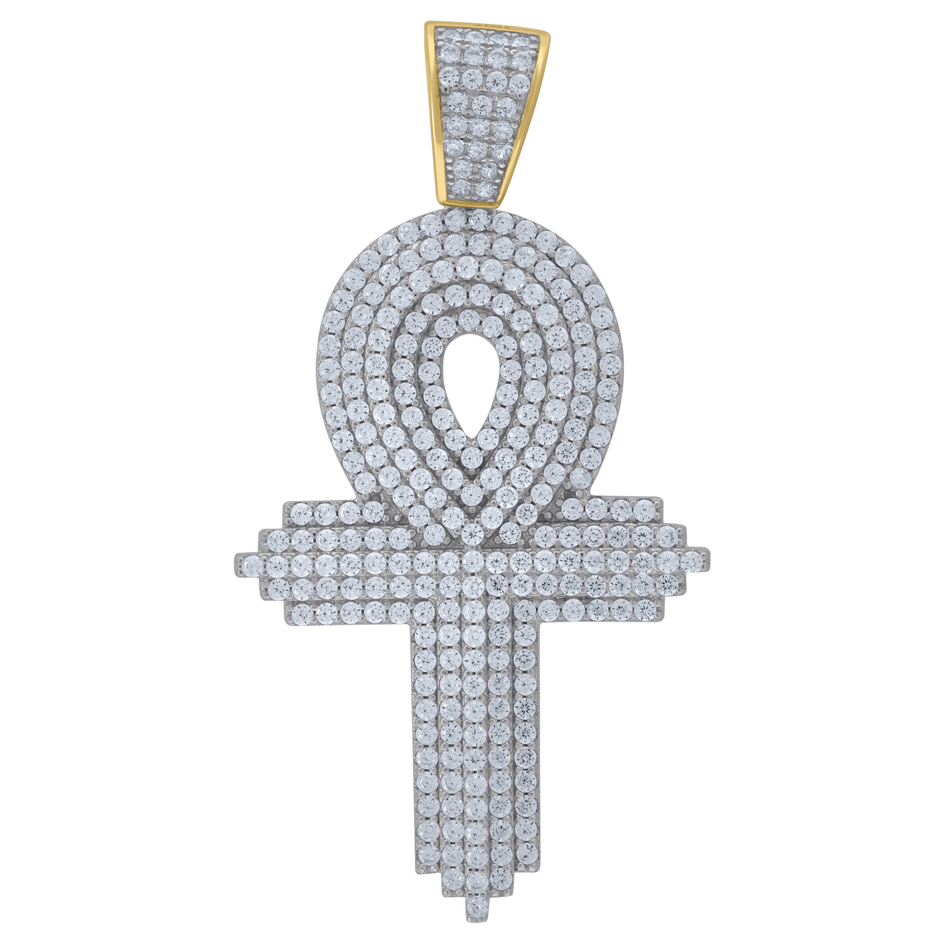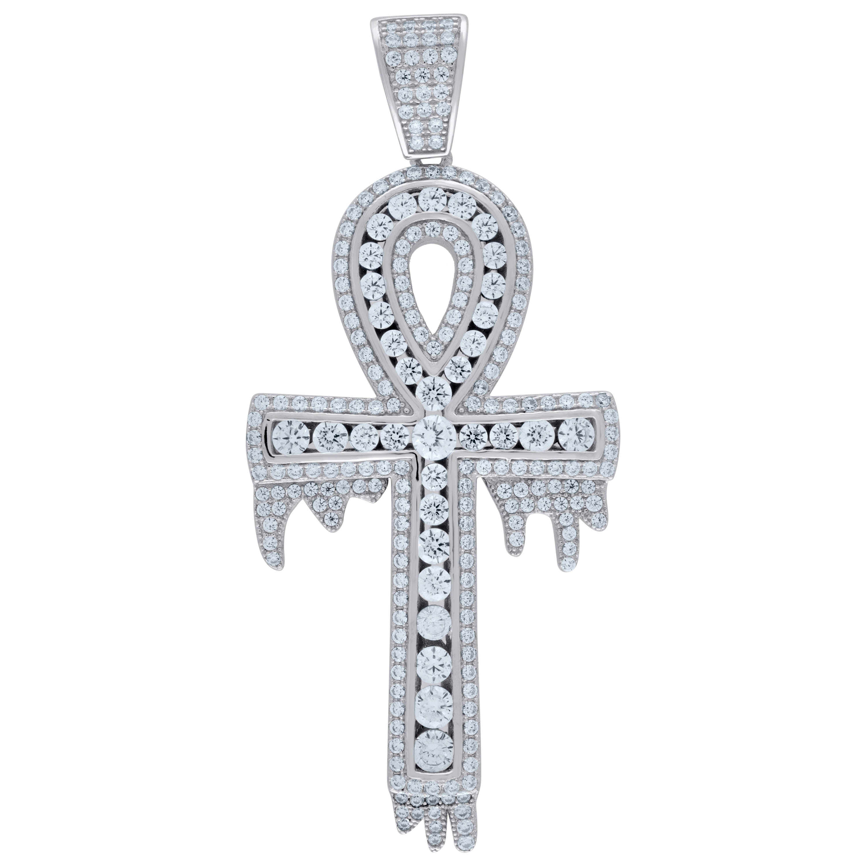 925 Sterling Silver Unisex CZ Ankh Cross Dripping Religious Charm Pendant